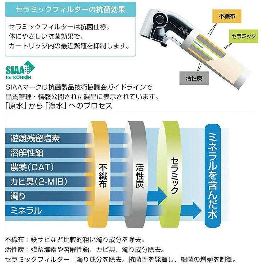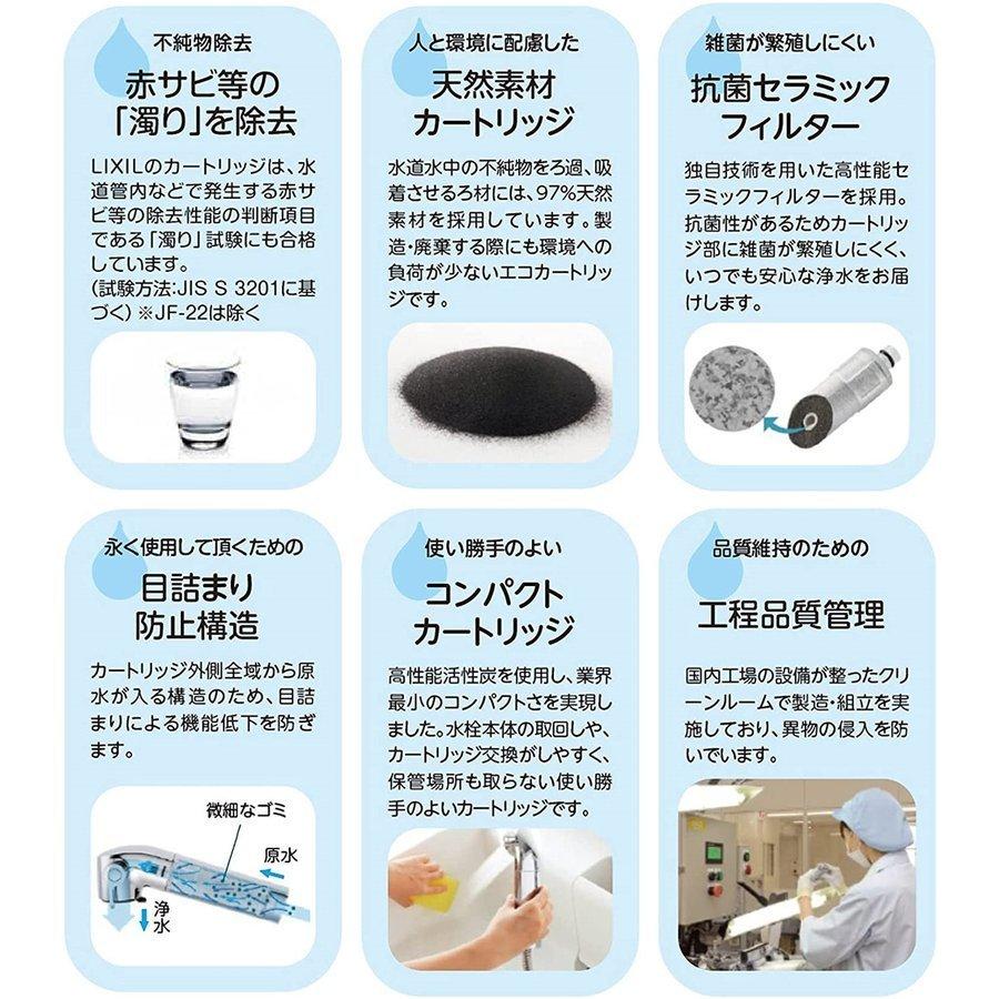 LIXIL INAX JF-21 浄水器カートリッジ ろ材の種類 : セラミック(原材料 アルミノケイ酸カルシウム)、活性炭、不織布 ※ミネラルセラミックフィルター(原材料 アルミノケイ酸カルシウム)は、抗菌製品技術協議会(SIAA)の定める抗菌製品の品質と安全性の自主基準に適合しています。 ろ過流量 : 2.5L/分(流動圧0.1MPaの場合) 人と環境に配慮した天然素材使用率97%--水道水中の不純物をろ過、吸収させる材には、97%天然素材を採用しています。製造、廃棄する際にも環境への負荷が少ないエコカートリッジです。 対応商品:JF-1450SX、1450SX/SE、1450SXN、1450SXN/SE、1451SX、1451SX/SE、1451SXN、1451SXN/SE、1460SX、1460SXN、2430S、2432S、2432SN、2450SX、2450SXN、2450SXN/SA、2451SX、2451SX/SA、2451SXN、2451SXN/SA、6450SX、6450SXN、6451SX、6451SXNLIXIL INAX JF-21 浄水器カートリッジ ろ材の種類 : セラミック(原材料 アルミノケイ酸カルシウム)、活性炭、不織布 ※ミネラルセラミックフィルター(原材料 アルミノケイ酸カルシウム)は、抗菌製品技術協議会(SIAA)の定める抗菌製品の品質と安全性の自主基準に適合しています。 ろ過流量 : 2.5L/分(流動圧0.1MPaの場合) 人と環境に配慮した天然素材使用率97%--水道水中の不純物をろ過、吸収させる材には、97%天然素材を採用しています。製造、廃棄する際にも環境への負荷が少ないエコカートリッジです。 対応商品:JF-1450SX、1450SX/SE、1450SXN、1450SXN/SE、1451SX、1451SX/SE、1451SXN、1451SXN/SE、1460SX、1460SXN、2430S、2432S、2432SN、2450SX、2450SXN、2450SXN/SA、2451SX、2451SX/SA、2451SXN、2451SXN/SA、6450SX、6450SXN、6451SX、6451SXN
