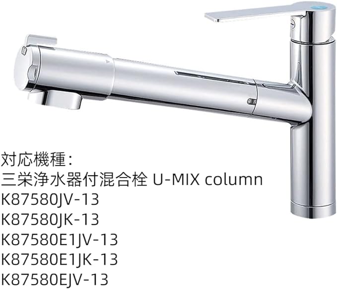 品 名:浄水カートリッジ 品 番:M71750M-1 材料の 種類:ABS樹脂 ろ材の種類:活性炭、不織布 ろ過流:2.5L/分 使用可能な最小動水圧:0.05MPa 浄水能量(JISS3201での試験結果)家庭用品品質表示法に定められた除去対象物質 遊離残留塩素 濁り 2-MIB(カビ臭) 陰イオン界面活性剤 ジェオスミン フェノール類 テトラクロロエチレン トリクロロエチレン ベンゼン CAT(農薬) 溶解性鉛 総ろ過水量1,200L(除去率80% ろ材の交換時期の目安 (1日10L使用した場合の月数)4ヶ月 対応機種:三栄浄水器付混合栓 U-MIX column K87580JV-13、K87580JK-13、K87580E1JV-13、K87580E1JK-13、K87580EJV-13品 名:浄水カートリッジ 品 番:M71750M-1 材料の 種類:ABS樹脂 ろ材の種類:活性炭、不織布 ろ過流:2.5L/分 使用可能な最小動水圧:0.05MPa 浄水能量(JISS3201での試験結果)家庭用品品質表示法に定められた除去対象物質 遊離残留塩素 濁り 2-MIB(カビ臭) 陰イオン界面活性剤 ジェオスミン フェノール類 テトラクロロエチレン トリクロロエチレン ベンゼン CAT(農薬) 溶解性鉛 総ろ過水量1,200L(除去率80% ろ材の交換時期の目安 (1日10L使用した場合の月数)4ヶ月 対応機種:三栄浄水器付混合栓 U-MIX column K87580JV-13、K87580JK-13、K87580E1JV-13、K87580E1JK-13、K87580EJV-13
