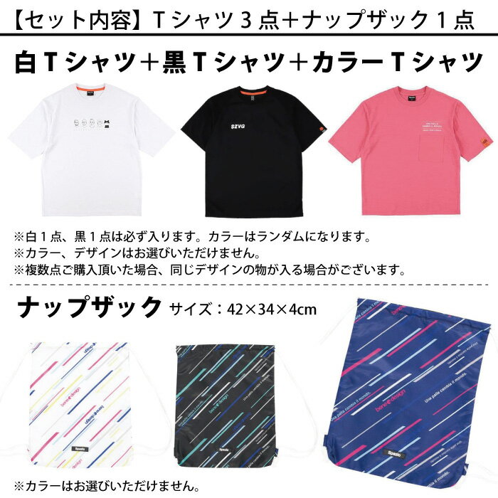 【BLACKFRIDAY期間中P5倍】スパッツィオ ユニセックス 4点セット【Mサイズ】 半袖Tシャツ ナップザック 福袋 黒T 白T カラーT ブラック ホワイト お楽しみ プレゼント
