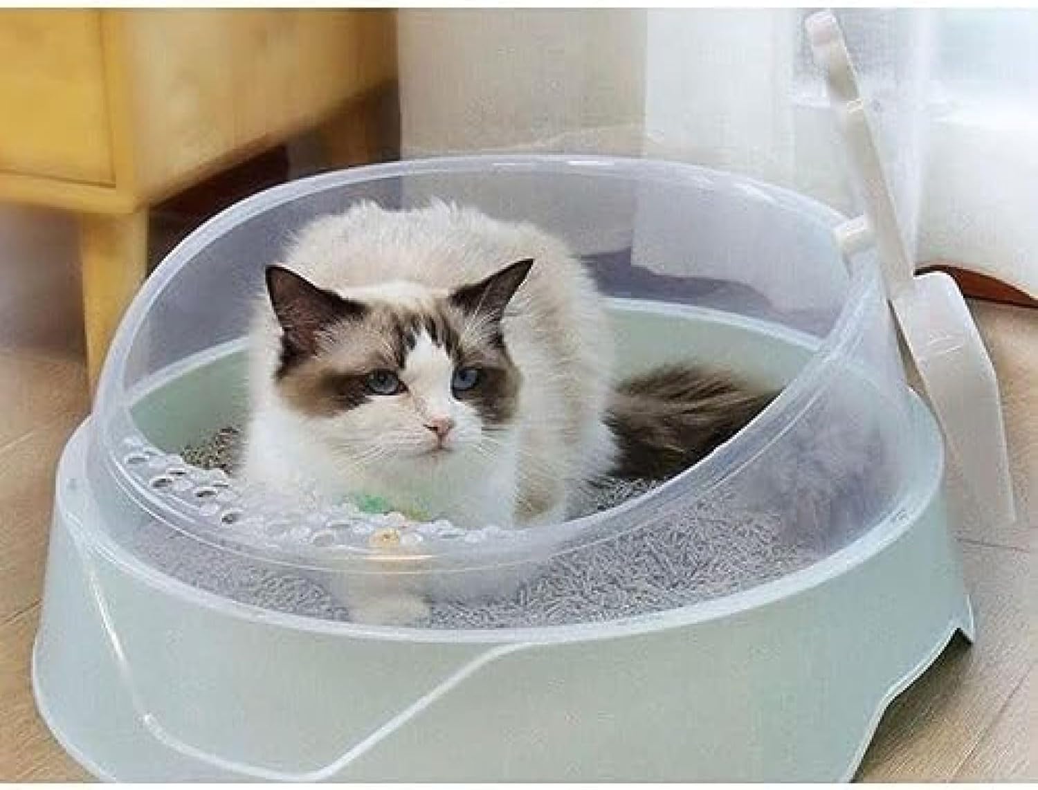 丸型猫トイレ 猫用トイレ本体 半密閉型 オープンタイプ ハーフカバー スコップ付き 大きい猫 大きいトイレ 飛び散り防止カバー付き
