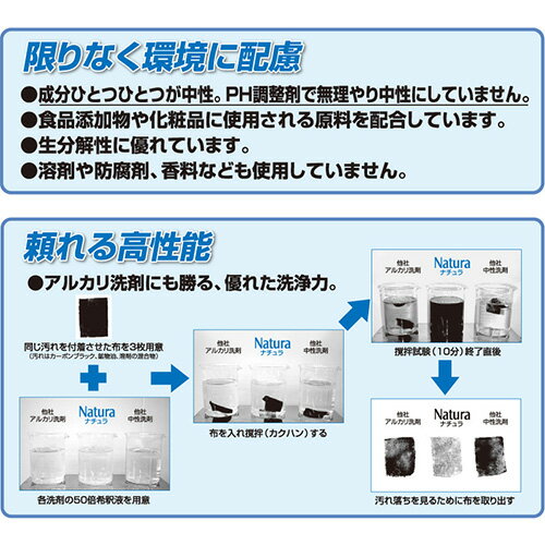 ■メーカー■ ミッケル化学 ■商品名■ ナチュラ ■容量■ 18kg ■商品特長■ ・原料レベルから中性にこだわった多目的中性洗剤です。 アルカリ洗剤にも匹敵する洗浄力を発揮します。 溶剤や防腐剤、香料を使用していません。 ・成分ひとつひとつが中性。 PH調整剤で無理やり中性にしていません。 ・食品添加物や化粧品に使用される原料を配合して います。 ・生分解性に優れています。 ・PRTR法報告義務ナシ 内分泌撹乱作用を有すると疑われる化学物質:不使用 室内空気汚染物質濃度指針値対象物質:指針値以下 学校環境衛生基準検査対象物質:判定基準以下 リン系化合物:不使用 ■用途■ 中性多目的洗剤として。 床面や樹脂ワックスの表面洗浄、水洗いができる硬質表面 (プラスチック製品、スチール製品、ビニールレザー製品、 窓ガラス等)の洗浄。 ※但し、水を吸い込むもしくは水洗いが出来ない表面 (鉄、無垢木、漆喰、漆仕上げなど)、食品及び食器類 などには使用できません。 ■標準使用濃度■ 30~80倍希釈 ・樹脂ワックスの表面洗浄:30~60倍 ・硬質プラスチック、スチール、ビニールレザー製品、 窓ガラス等:50~80倍 ・自動床洗浄機での表面洗浄:60~80倍 ■外観■ 淡青色透明液体 ■臭い■ 弱い特異臭 ■液性■ pH:約7.5(25℃) ■成分■ ノニオン系界面活性剤、キレート剤、ビルダー剤、可溶化剤、分散剤、水 ■関連商品■ その他の床用クリーナーはこちら↓ ・床用クリーナー一覧原料レベルから中性にこだわった多目的洗剤