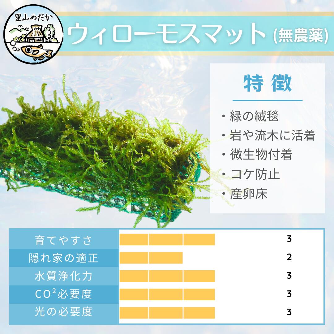 国産 無農薬 ウィローモス マット 水草 水中葉 水質浄化 産卵床 微生物付着 メダカ 金魚 熱帯魚 シュリンプ アクアリウム 水槽レイアウト 癒し空間 初心者でも簡単