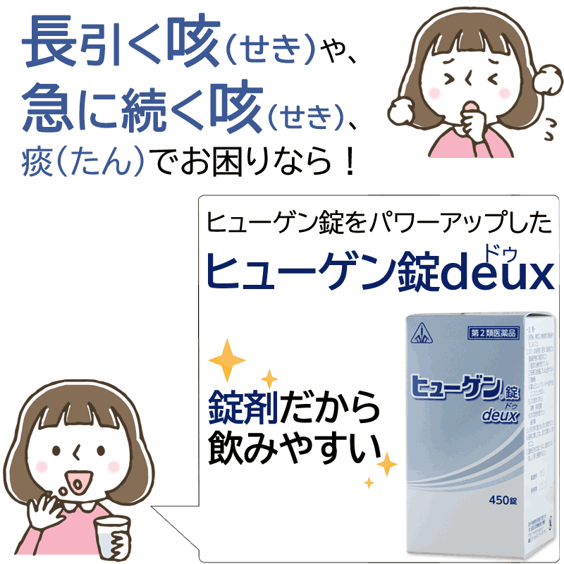 【第2類医薬品】〔ホノミ〕ヒューゲン錠deux 450錠【楽天ポイント5倍】 咳止め 痰切り 鎮咳 去痰 鎮咳去痰薬 花粉症 アレルギー の 咳 せき 痰 たん 咳を止めたい 長引く咳 に ひゅーげん じょう どぅー 子供 漢方 ヒューゲン ドゥー ホノミ漢方 去たん(控)