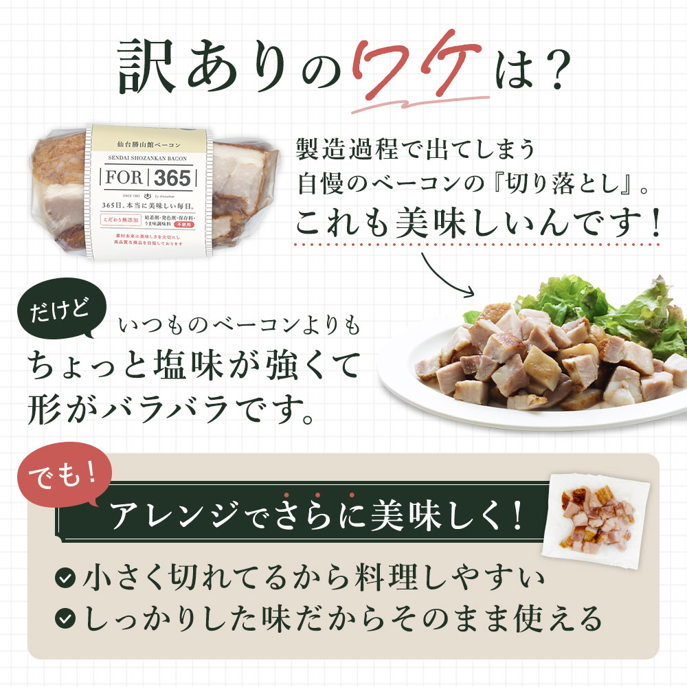 完全無添加 【 切り落とし ベーコン 100g 訳あり 冷凍便 】仙台勝山館 FOR365 | 無添加ベーコン 添加物不使用 無塩せき 究極のベーコン 高品質 BBQ お取り寄せグルメ プレゼント ハム ソーセージ 365 フォーサンロクゴ