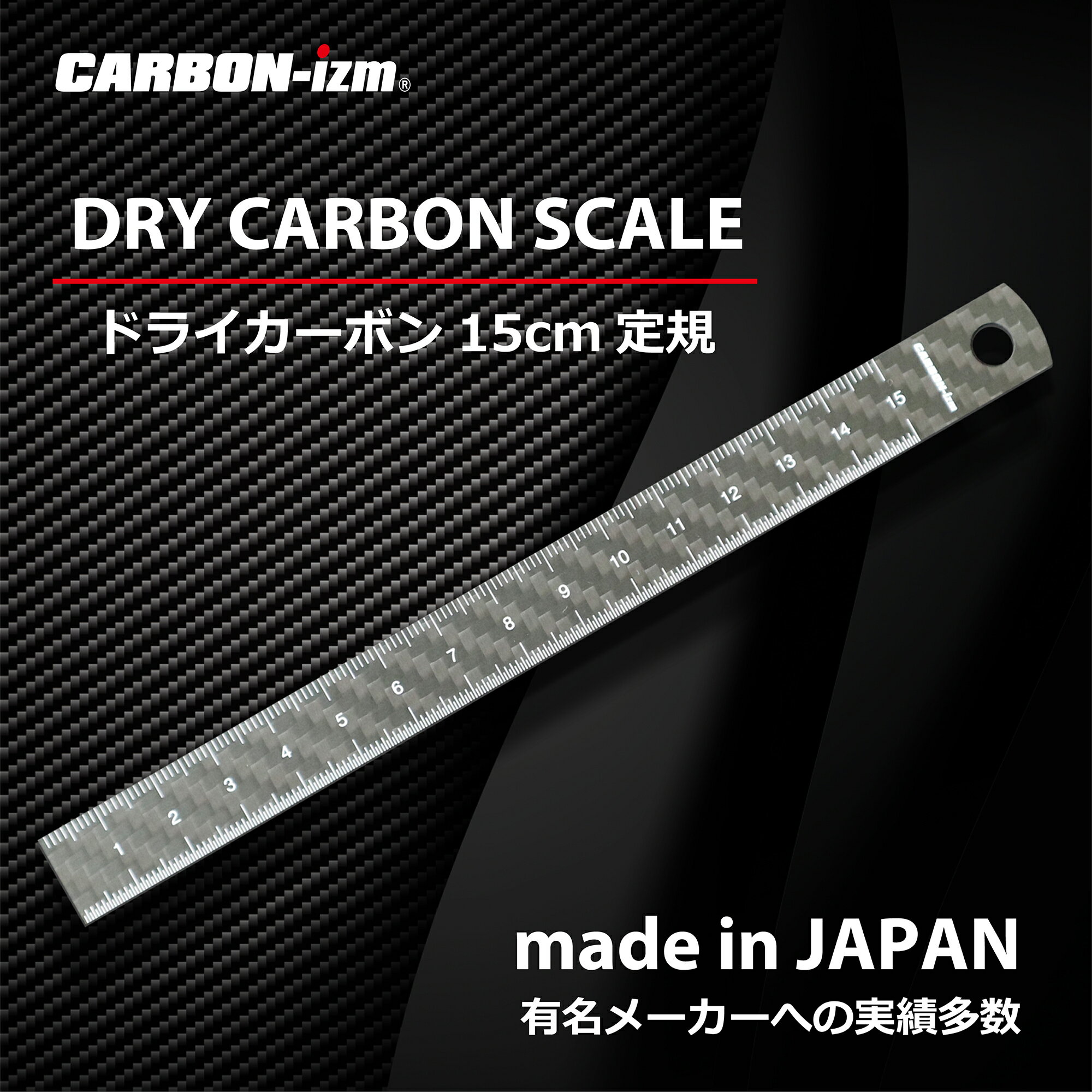 【ドライカーボン】カーボン定規15cm リアルカーボン CARBON-izm 日本製 超軽量 フルカーボン 両目盛 ものさし 15センチ 格好いい お洒落 文房具 事務用品 製図