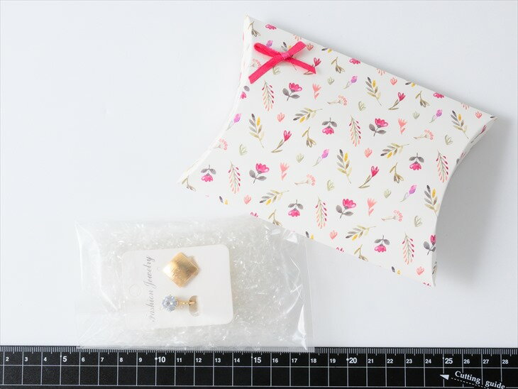 小さめピロー型ボックスのギフトラッピングキットです♪手作りのアクセサリーを可愛くラッピングして、大切な方への贈り物をもっと特別に!OPP袋やセロパッキンなど梱包に必要な材料と、スタッフおまかせのサテンリボン付き♪ボックスは9種類からお好きなものをお選びください。【セット内容】・選べるギフトボックス5枚・スタッフおまかせアクセサリー台紙5枚・スタッフおまかせサテンリボン5枚・OPP中サイズ袋5枚・OPP大サイズ袋5枚・セロパッキン3g※同じ商品でも入荷時期等により、サイズ・色調の仕様に若干の変更・個体差がある場合がございます。※同じ商品でも入荷時期等により、サイズ・色調・メッキ等の仕様に若干の変更・個体差がある場合がございます。※細かな擦り傷などのダメージがある商品が入ることがあります。※照明・モニターの関係上、多少お色味が変わる事がございます。紗や工房のパーツは商用利用が可能です♪ぜひ素敵なアクセサリーに加工して販売してください♪【内容詳細】ギフトラッピングセット 140mm 5セット 約14cm 【サイズ】【ギフトボックス】組立時:約W140mm×H100mm×D30mm【アクセサリー台紙】約55mm×34mm▼▼プレゼント用のラッピングにおススメ▼▼▼▼お家でハンドメイドデビューしよう♪▼▼