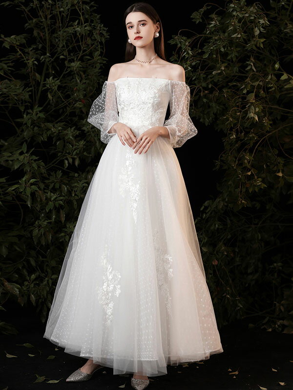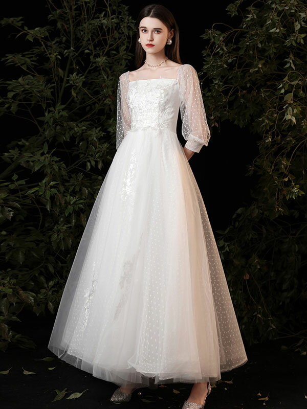 海外挙式 ブライダル ロングドレス ウエディングドレス 花嫁 Aラインドレス リゾートドレス Wedding dress 結婚式 上品 前撮り 挙式 ロングスリーブ 二次会 シンプル ブライダル ロングドレス 刺繍 リゾート ピアノ 発表会 セミオーダー ファスナー