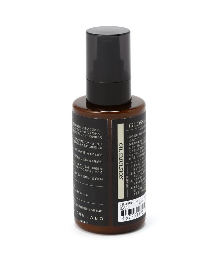=必ずご覧ください/ATTENTION= 当店の販売在庫数は、直営店舗の在庫も含まれております。 その為店舗取寄せ商品在庫につきましては、ご注文頂いた時点で完売になっており、 在庫切れが発生する場合がございます。 店舗取寄せ商品が含まれるご注文に関しましては、商品の発送までに1週間前後お時間を頂いております。 ※複数品番のご注文を頂いた場合、店舗取り寄せ品と合わせて一括発送させて頂きます。 ※取り寄せ商品が、時間差によって店舗にて完売の場合、お取り寄せ不可となる場合もございます。 お使いのパソコンのモニターによって、実物商品とカラーが異なって 見える場合があります。誠に申し訳ございませんが、ご理解下さいます様お願いいたします。 サイズ表は、製品の生地や織りなどの特性により、多少の誤差はございます。予めご了承ください。 誠に申し訳ございませんが、予めご了承の上ご利用頂けますようお願い申し上げます。 ・メーカー希望小売価格はメーカー商品タグに基づいて掲載しています エビデンス(証明資料)COLOR:アザー3 COMMENT 革づくりで使用される加脂剤を高濃度で配合。繊維深部まで浸透して潤いを与えるため、 革本来の耐久性を維持したまま柔軟性が劇的にアップします。肩や肘の動きがスムーズになり、新品の革ジャンでも身体にすぐ馴染みます。 ※従来品は革作りで実際に使用されている油剤が使われていないため、柔軟効果が劣る微細な乳化技術で油分を細かく均一に広げるため、テカリや過剰な光沢を抑えます。 革本来の表情を引き立てながら、上質で落ち着いた自然な質感に仕上がります。 サラッとしてベタつかず、カビも寄せつけにくい 油分を微細に乳化・分散させることで、表面にベタつきを残さず通気性を維持します。 ホコリやカビの付着を抑え、衛生的で清潔な革の状態を長期間保てます。 使用方法 1. 容器をよく振り、必ず目立たない箇所で色落ちやシミの有無をテストしてください。 2. 柔らかい布やブラシにスプレーし、ムラのないように拭きのばしてください。 3. 自然乾燥させた後、乾いた布で余分なオイルを軽く拭き取ります。 4. 柔らかくしたい場合は、塗布後、革が湿った状態で揉みほぐしながらオイルを浸透させると効果的です。 素材 アザー3:油脂、保湿剤、高分子ポリマー、水 生産国 アザー3:日本製 cm/sizeF高さ12cm 内容量(ml)100ml 直径4.5cm