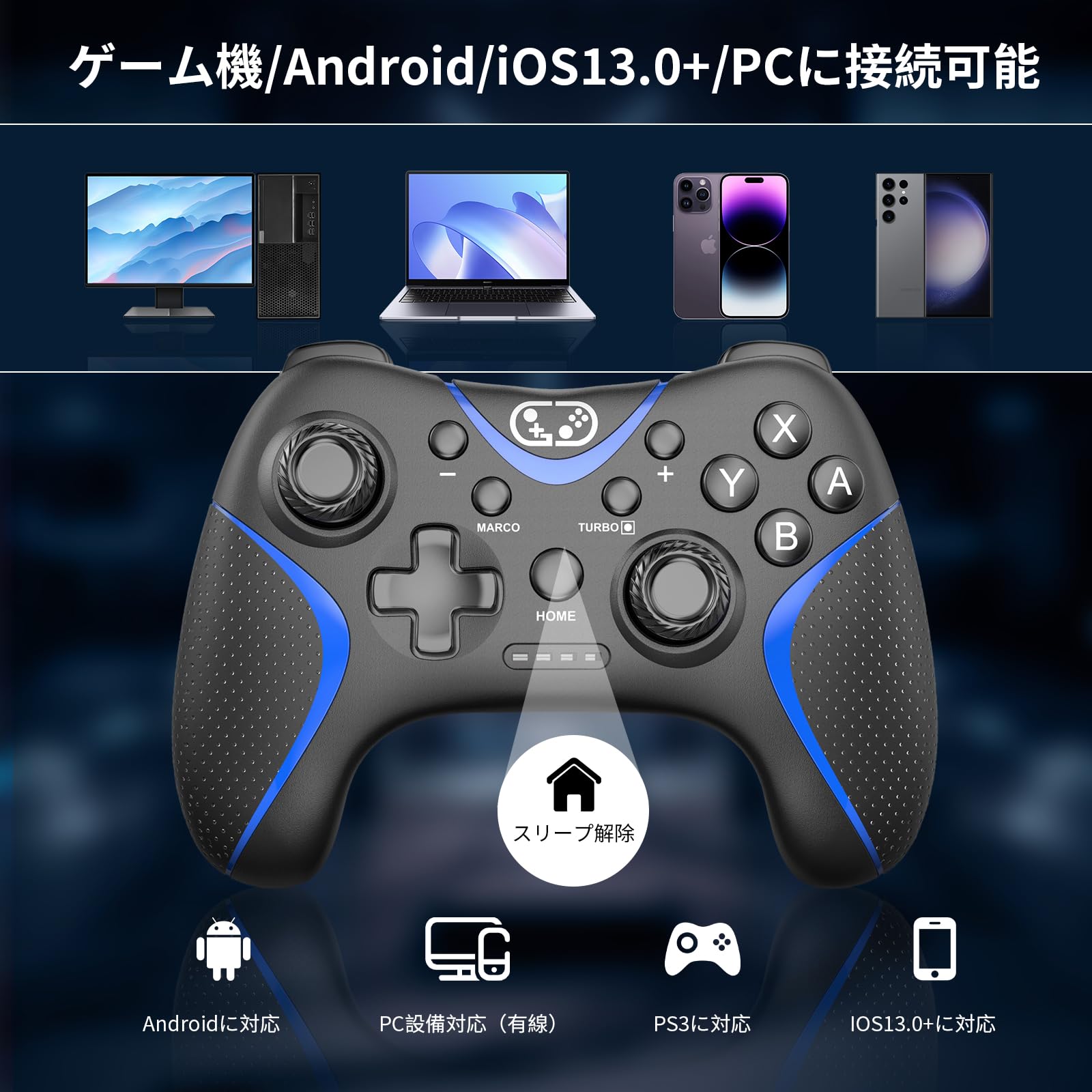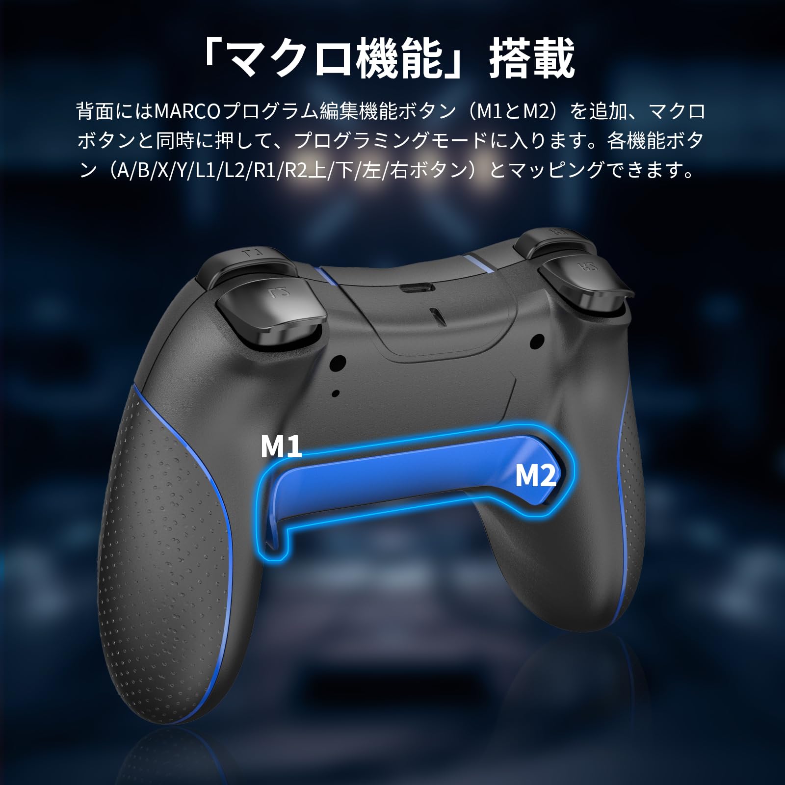 【送料無料】Switch コントローラー 2025アップグレード Sungale スイッチ プロコン 自動連射/連射ホールド 背面ボタン付き マクロ機能 Bluetooth5.0接続 6軸ジャイロセンサー 10時間連続使用 連射コン Switch/PC/iOS13.0+/Android対応 日本語取扱説明書付き (ブラック+ブル