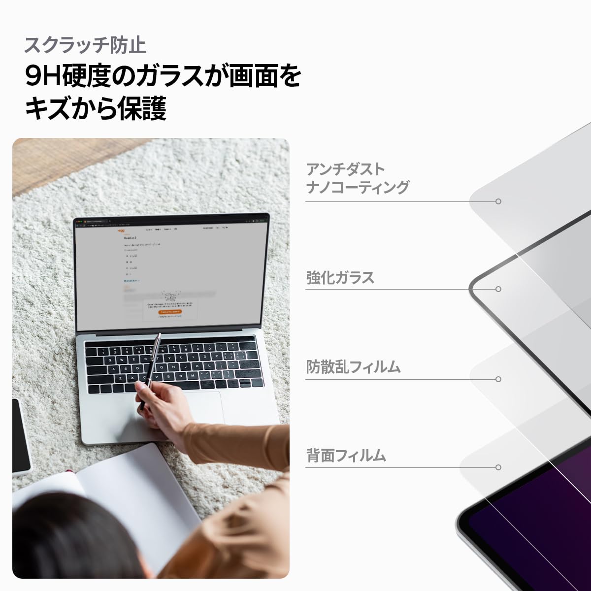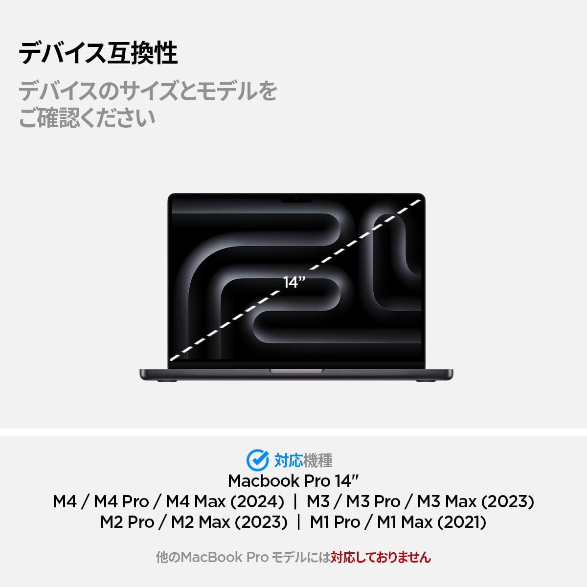 商品情報商品の説明主な仕様 対応機種 ; MacBook Pro 14インチ 2024/2023/2021モデル (M4 / M4 Pro / M4 Pro Max / M3 / M3 Pro / M3 Max / M2 Pro / M2 Max / M1 Pro / M1 Max)br薄い・強い・滑らか ; 硬度9H以上で傷つきにくく、側面は曲面加工されており、滑らかな手触りでガラスの厚さが気になりにくく液晶画面の全面をしっかりと保護しますbr撥油加工・飛散防止 ; 汚れがつきにく、滑らかな触り心地が特徴です。飛散防止加工で万が一割れた時も安心ですbr全面保護 ; 本製品は液晶の全面をカバーするフルカバータイプのガラスフィルムになります