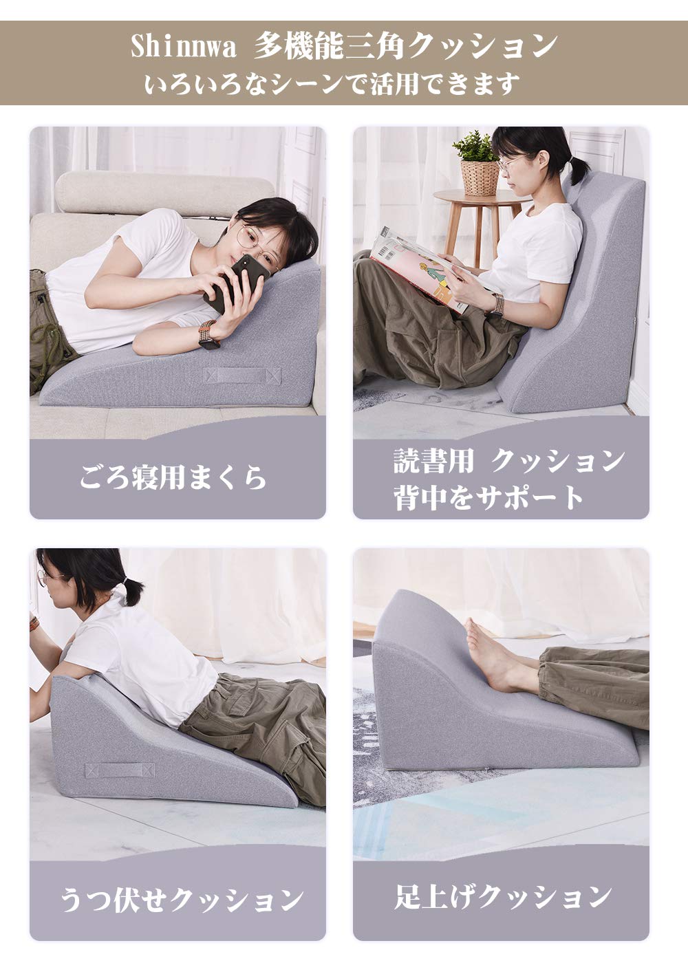 【送料無料】Shinnwa 高反発 クッション 背もたれ クッション ベッドの上 三角クッション 三角枕 逆流性食道炎 枕 まくら ランバーサポート 年寄りプレゼント 腰当てクッション 腰枕 就寝用 専用 読書用 クッション 姿勢矯正 クッション テレビ腰枕 洗えるカバー ループ付き