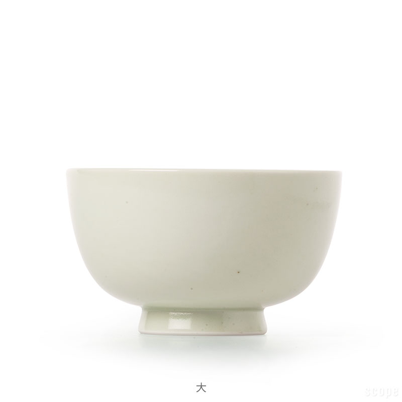 腰が丸く、見た目以上に容量があって使い易い東屋のご飯茶碗に土灰釉で焼き上げた、無地バージョンが登場しました!無地とは言っても単に白くつるんとしていないところがポイント。「土灰」は窯で焼く工程で、ほくろのような小さな黒点や白いプツプツが表面に現れ、それがこの器の大切な表情となっています。また腰の丸い形状は歩留まりが悪い等の理由で今ではあまり見ない形なのですが実際使い続けると実に使い易い形。そんなユーザに目を向けてくれている東屋さんの姿勢にはますます信頼度が上がりますよね。 2種あるサイズのうち小は子供から大人まで使える万能サイズ。小振りだから多くの人にとって持ち易く容量は大人でも十分な量が入ります。大サイズは一般的なご飯茶碗よりも気持ち大きいかな?ぐらいに感じます。見た目以上に量が入るのでお茶漬けにも使える大人の男向きサイズです。主張しすぎることなく陶器のような個性を持ち合わせたこの無地のお茶碗は、スコープで販売中の和食器はもちろん、お手持ちの和食器と組み合わせても違和感なく馴染んでくれるはず。陶器、磁器、柄も産地も製造手法も実にさまざまな和食器。気の向くままに集めた器同士の組み合わせを存分に楽しみながら粋な食卓を組み上げちゃってください! スペック 材質 磁器(天草陶石)、土灰釉 寸法 小 : 約φ110×H60mm / 150g / 300ml(満水) 大 : 約φ117×H70mm / 210g / 400ml(満水) 生産 Made in Japan 備考 電子レンジ:○ / オーブン:× / フリーザー:× / 食器洗浄器:○ 購入前に確認ください ・ 小さな黒点やピンホール、多少のがたつきは良品としています。