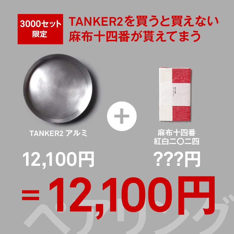 スぺサル企画 TANKER2+ 麻布十四番 紅白二〇二四 毎日の生活に溶け込み、日々の一部になっているTANKER2。来客があれば飲み物をまとめて置く場所になり、片付けでは使った食器をまとめて運ぶことができる。お風呂に入りながら本を読む時には良い物置きになってくれるし、バーベキューでは大活躍間違いなし、あって良かったTANKER2、誰もがそう思う瞬間のあるイタリア的バール盆、アルミ製だからとても軽くて頑丈です。シンプルな道具だから用途は広いのですが、使わない時は大きくて邪魔だから常に使っていればいい!その一つの用途が、キッチンリネンを敷くことで洗った食器を乾かす場所として使い続ける、です。洗った食器やキッチンツールの山が邪魔なら、TANKER2に乗せたまま丸っと移動させることもできるので、好きな場所で食器を乾かしておくことができます。そんな使い方をもって、まいにち使うもの化は大成功。そこで、TANKER2で使い易い長さに調整した麻布十四番の特別版 紅白二〇二四を作って貰ったのでオマケにします。限定数3000、この在庫が終わるまで企画は続きます。麻布十四番の特別版は、布を染めるのではなく、赤く染めた糸を縦糸に使って左右色分けされています。定番麻布と同じく、糊は落としてないので使い始める前に50℃前後のお湯で洗ってください。赤を使っているので色落ちしなくなるまでは単独で洗うことをおススメします。 軽くて丈夫だから タンカーのように沢山運べる 真鍮のお盆、とにかく気に入っています。ただ、食卓へ料理を運ぶ、食卓から食器をひくには小さい、そこにひとつの穴が開いていたんです。真鍮製のお盆より大きなサイズが欲しい、純粋な用途から新サイズ制作を直談判し、東屋さんが作ってくれたのが真鍮盆の延長にはない、深型のアルミ盆、まだタンカー2と名付けられていない頃はバール盆と呼ばれていたそれでした。僕が考えていた物ではないシンプルなアルミ盆、その初御披露目の日、《いい物ができた》と力強く説明してくれたのですが、僕はどうにも心惹かれなかったんです。いわれるまま云々頷くばかりだから、僕がピンときていないことは伝わってしまいました。《一つぐらい工業製品の匂いがある物を生活に加えるのもいいものですよ》そう言われて、僕はその深型アルミ盆との生活を始めました。そして、実際に付き合ってみれば、僕が欲していた物とは違う物ながら、僕の生活に空いていた穴は見事にふさがりました。軽くて丈夫なつくりだから、どれだけ食器を重ね乗せても歪む感じはなく、不安がない。深さがあるからトレーの中で何かがこぼれたとしても、後で水で流して拭けばよいだけ。とにかく便利に使えます。 それに合った大きさや重さ 愛用を続けていくうちに、用途とその物の雰囲気の相性の良さを感じ始め、そこでようやく、このサイズは真鍮製お盆の延長になくて良かったと理解できました。物には、それにあった大きさというのがある!んですね。真鍮のお盆はお酒やお茶、キャンドルといった嗜好品、少し趣味によった物、生活のゆとりや休息をのせる物だから上品であって欲しい。あまり大きいと絵にならない。お運びは多くの食器をのせて運んで汚れて洗ってを繰り返す物だから、そう使うことが気にならないことが、上品であることより大事なのだと理解できました。もし真鍮製のお盆がTANKER2の大きさになれば、お盆だけでも結構な重量となり、そこに沢山の食器が乗れば、重くて扱い難いのは間違いない。また大きくなることで上品さも失われてしまう。お運びが欲しいなら、真鍮のお盆を大きくするのではなく、お運びとして使い易いお盆を作った方がいい。使って始めて理解できました。そして、タンカーという名前が、なによりうまくその物を表現しています。 イタリアのバール盆 アルミを使い、へら絞りで作る 僕は知らなかったのですが、イタリアのバールでよく使われている典型的なトレイの形なのだそうです。実際、東京にあるローマ料理屋さんで使われているイタリア製のバール盆を見せてもらいました。現地で使われている物は樹脂製が多く、ロゴ等がプリントされた派手な物が多いようです。そんな深いお盆にテーブルの上の使い終わった食器を積み込んで一気に運びます。飲み残しや食べ残しがあっても気にせず積み重ね、それがお盆にこぼれたとしてもお構いなし。気兼ねすることなく、思う存分に積み込んで一気に運びます。そんなイタリアの道具を、日本の職人が1枚のアルミ板からヘラ搾りで一つ一つ丁寧に作りあげ、新しい日本の日用品が完成しています。イタリアの日常に根付いたお盆だけあり、素晴らしく便利に使えます。大事に綺麗に使おうなんて思うことなく、日々気兼ねなく使い倒して、使い込んでいけば段々と生活が染み込んだ良い姿になっていきます。スーツケースをずっと使い続けていく事の楽しみとも少し似ているように感じています。 スツール60とタンカ