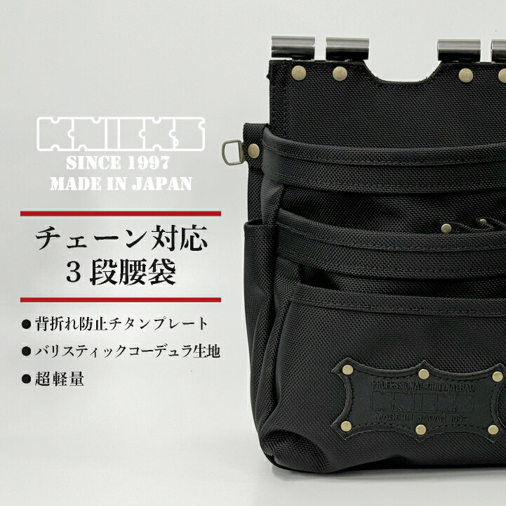 [即日出荷] KNICKS ニックス チェーン対応3段腰袋 コーデュラバリスティック nx-bat-301ddx