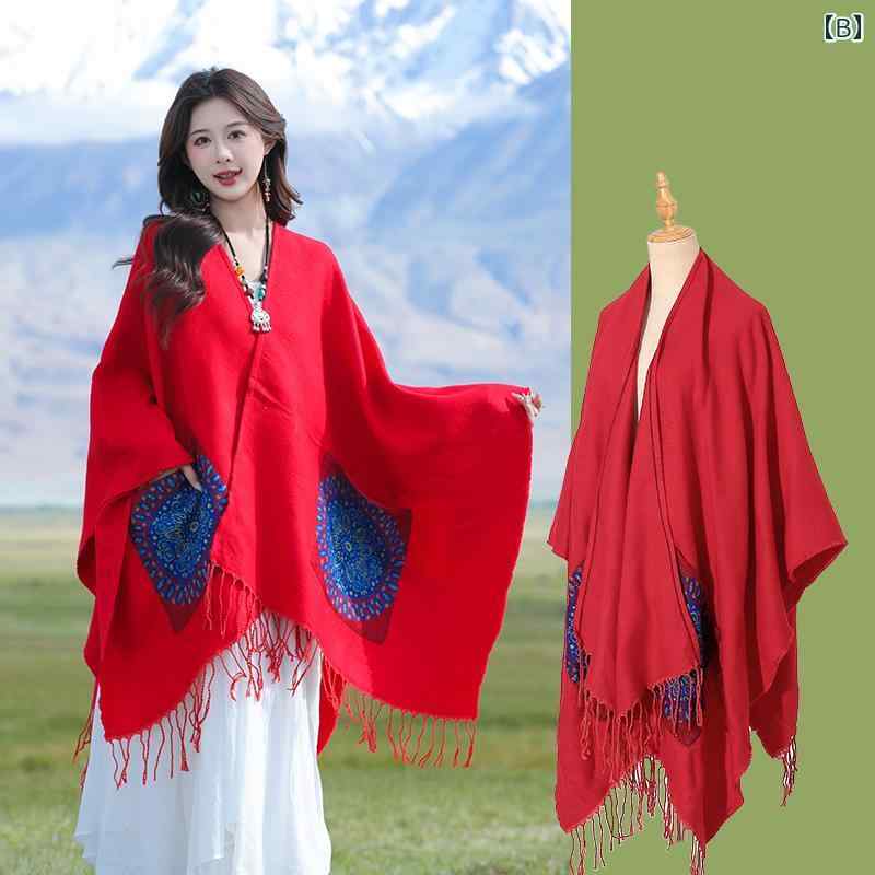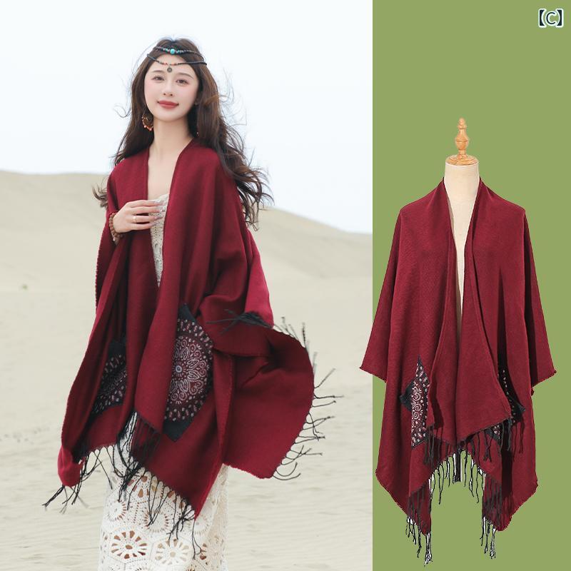 ショール エスニック 文化 ポケット ポンチョ 風 旅行 着 暖かい アウター マント 保温