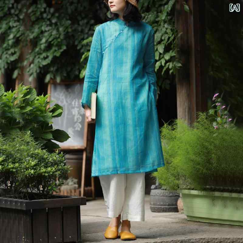 ワンピース エスニック ナチュラル リラックスフィット レディース 婦人服 チャイナ風 中華風 アオザイ風 レトロ 綿麻 春