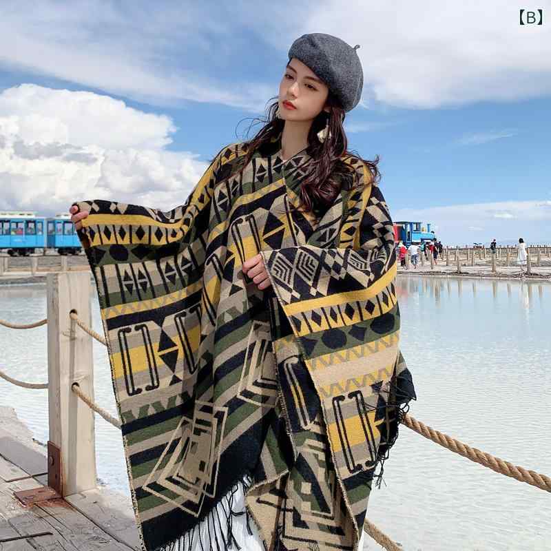 レディース スカーフ マント レディース ショール 幾何学模様 ボヘミアン オールシーズン 厚手 大きめ ユニーク 暖かい