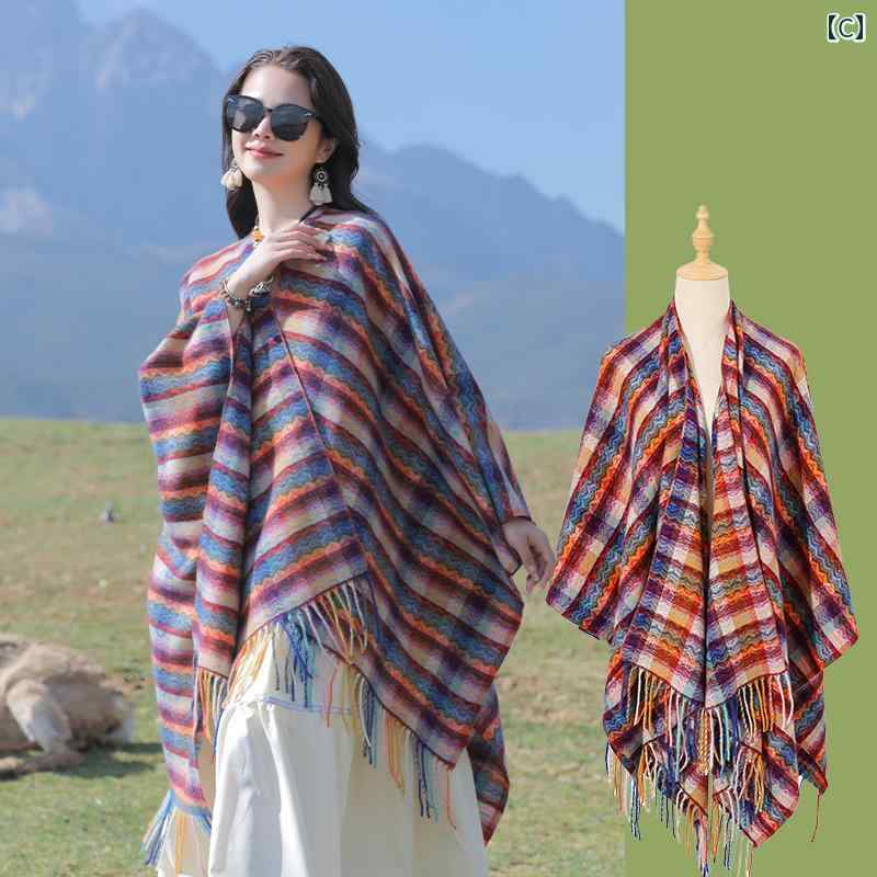 ショール ストール レディース カラフル エスニック スリット スカーフ ポンチョ 春夏 アウター 旅行 写真 マント 暖かい レディース 日焼け防止