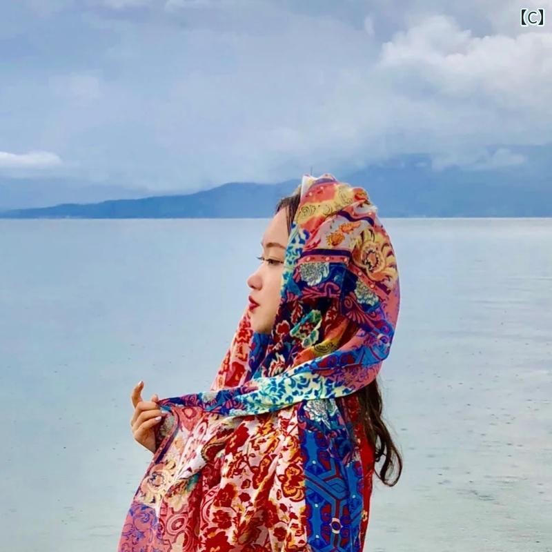 レディース ショール 大判 細長長方形90*180cm 薄手 アートケープ 日焼け防止 タッセル シルキー 幾何学模様 エスニック 民族調 エレガント おしゃれ カラフル エキゾチック アウター