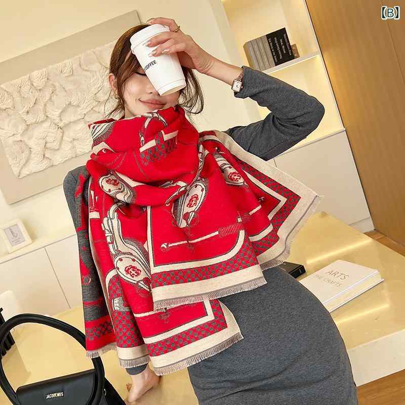 ショール ボヘミアン ファッション アクセサリー 両面 暖かい 厚手 ロング レディース フェイク スカーフ 秋冬 アウター ケープ エスニック