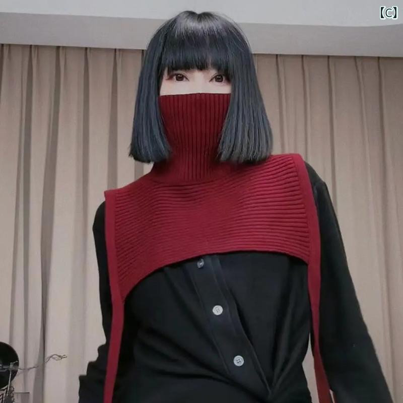 ファッション アクセサリー アウターウェア ハイネック リボン スカーフ ネックカバー 秋冬 ソリッドカラー ニット ウール スカーフ ショール 無地
