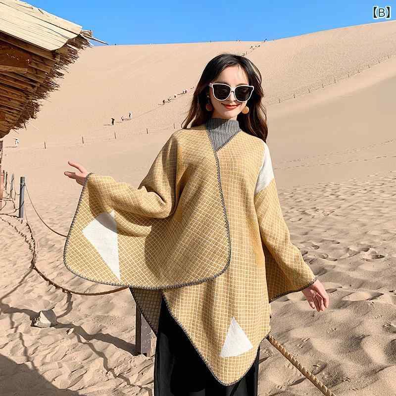 ショール エスニック ボヘミアン ファッション アクセサリー アメリカン 幾何学 厚手 マント スリット ショール エスニック ボヘミアン 旅行 写真 暖かい スカーフ レディース オールシーズン