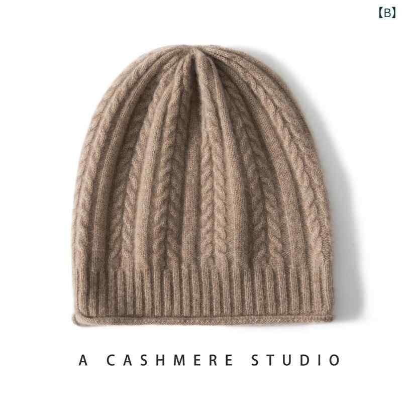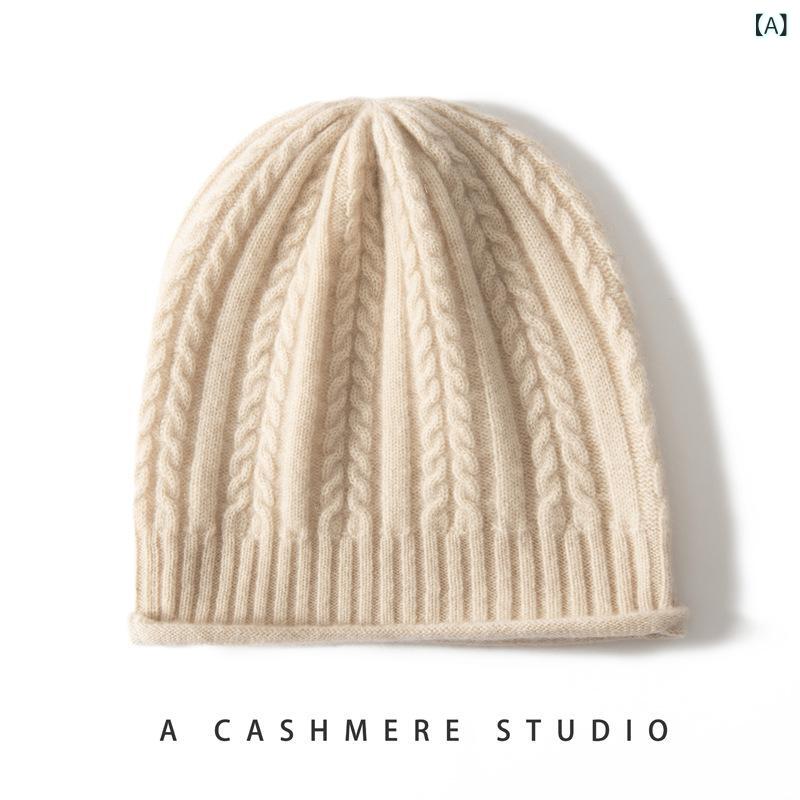ニット帽 レディース 防寒 保温 暖かい 100% カシミヤ 上質 ケーブル編み 無地 ロールアップ 丸型 フリーサイズ 秋冬 おしゃれ シンプル ファッション 通勤 柔らかな肌触り