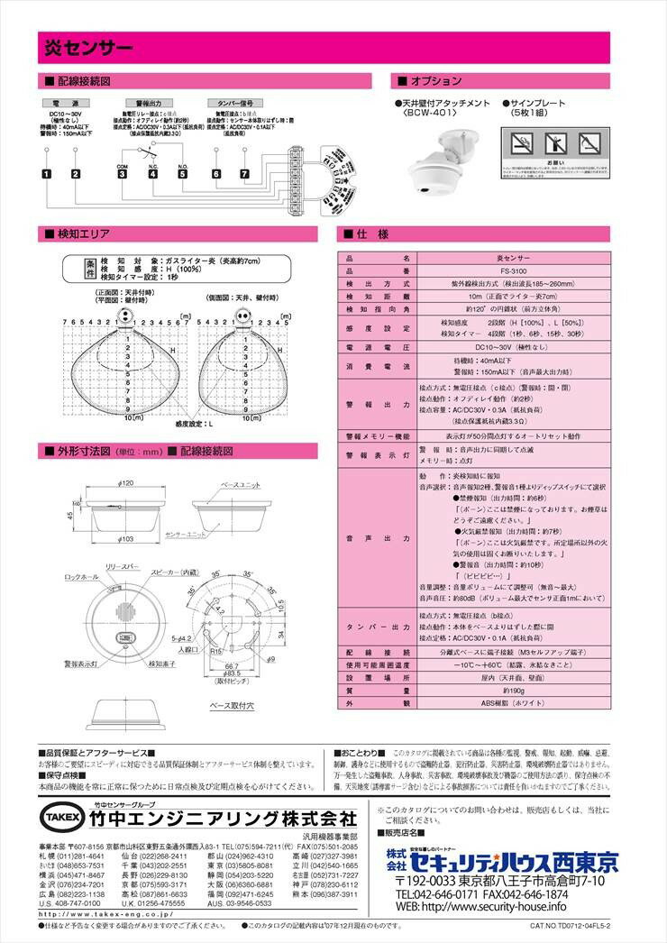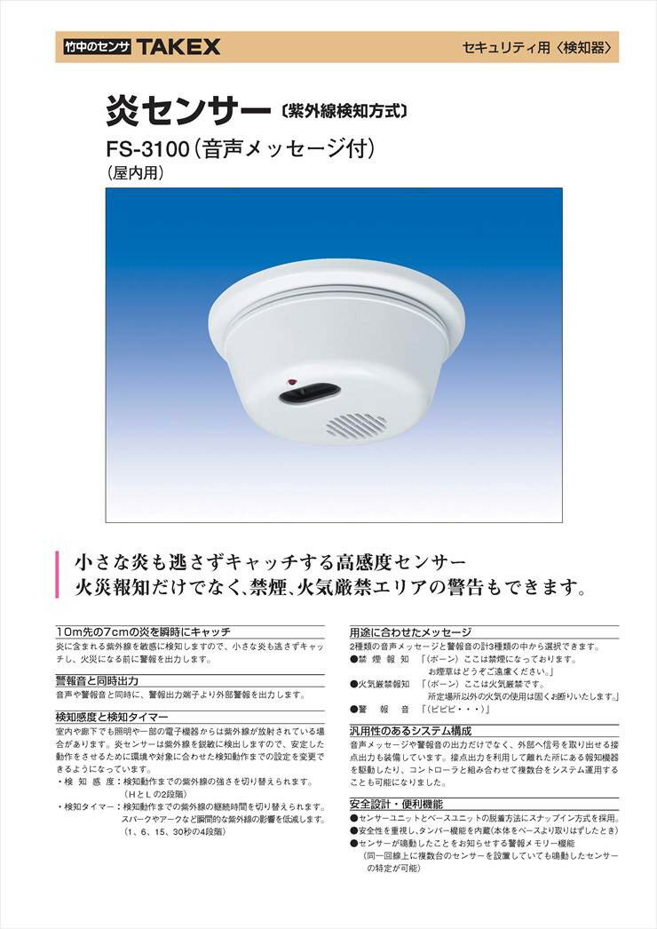 【FS-3100(B)】 炎センサー ブラウン 音声メッセージ付 TAKEX 竹中エンジニアリング