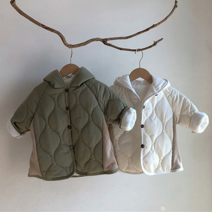 ベビー キッズ キルティング ジャケット 裏起毛 コート キッズ 赤ちゃん 男の子 女の子 ユニセックス アウター 秋 冬 中綿コート フード付き トレンチコート トップス 韓国子供服 子ども服 ナチュラル シンプル おしゃれ かわいい 70 80 90 100