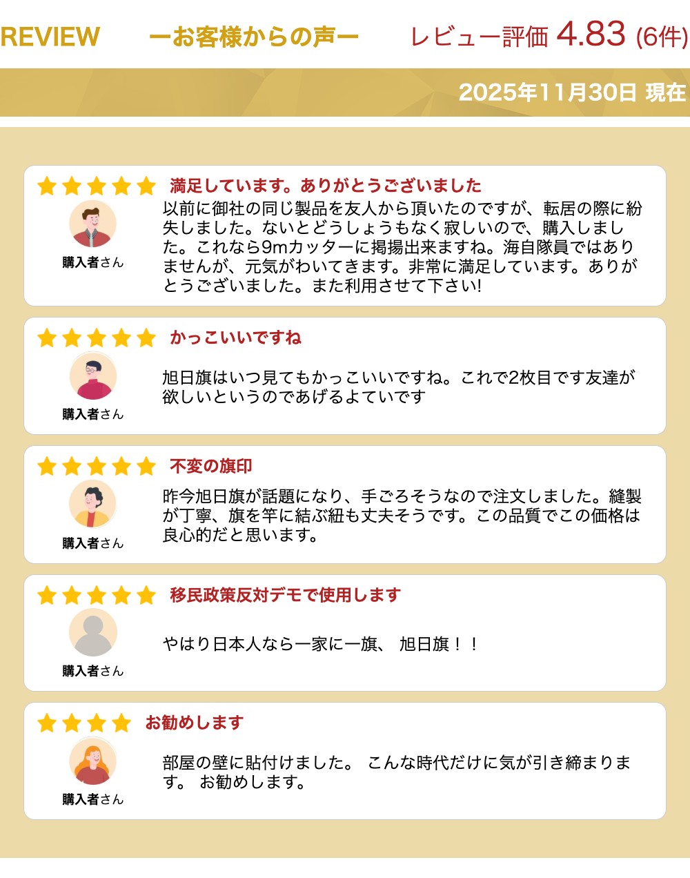 ●サイズ:680×1020mm ●材質:綿100% ●日本製 ------------------------- 関連商品【12月4日から10%OFF】 手旗(軍艦旗[自衛艦旗]) 海上自衛隊...【12月4日から10%OFF】 ミニフラッグ( 軍艦旗 [ 自衛艦旗 ...Z旗 (37×55cm) 国際信号旗 ゼットキ1,089円762円1,936円【12/10まで 10%割引】 楽天ランキング1位★ ミニフラッグ (...【12月4日から10%OFF】 軍艦旗 旭日旗 [220×290mm]...【12月4日から10%OFF】 ミニフラッグ(国旗[日の丸])...2,178円871円762円【12月4日から10%OFF】 ミニフラッグ(Z旗)...【12月4日から20%OFF】 ミニフラッグ ( 国際信号旗 UW旗 ...ミニフラッグ ( 国際信号旗 1旗 ) 国際信号旗グッズ シグナルフラ...762円1,161円550円【12月4日から10%OFF】 自衛隊 ワッペン 自衛艦旗 ・ 軍艦旗...【12月4日から10%OFF】 自衛隊 ワッペン 自衛艦旗 ・ 軍艦旗...【12月4日から10%OFF】 自衛隊 ワッペン ( ベルクロ付 )...217円435円653円