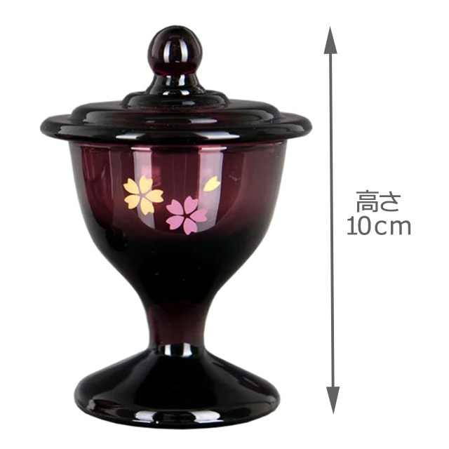 ガラス製 仏茶器 ワイン桜 セット 商品説明 透き通るワイン色のガラスが特徴的な仏具。ワンポイントで桜模様を 施しました。茶器は口元も広く、可愛いフタ付きで使いがってが良く大 変ご好評を頂いております。お水を入れると光の反射が美しくお仏壇を 神秘的に演出します。 デザインが可愛いので、上置きタイプのお仏壇や家具調仏壇にも合います。 ※仏飯器1個+茶湯器1個のセットになります。 ◆サイズ 仏飯器:高さ 約5cm 茶湯器:高さ 約10cm ◆材質:ガラス製