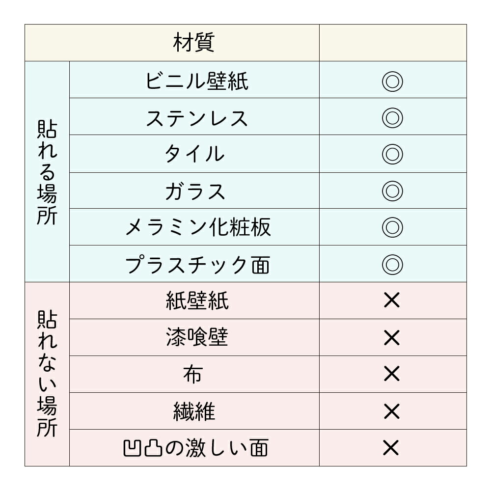壁紙もポスターも傷めない、しっかり貼れてきれいにはがせる再利用可能な吸着シートです。 画鋲やホッチキスを使用しないので、壁面を傷つけることなく、しっかりと貼れてきれいにはがせる両面テープです。塩ビ壁紙にも使用できます。 • 【入数】80片 (8片付×10シート) • 【1片サイズ】厚み 約1mm×28mm×28mm • 【材質】ポリウレタン・飽和ポリエステル樹脂 • 【原産国】日本 【特長】 ・壁面を傷つけないのは勿論、画びょうやホッチキスの穴なども開けずに、しっかりと貼れて、その後キレイにはがせる特殊な両面テープです。 ・ステンレスやタイル、ガラス等の光沢面は勿論、塩ビ壁紙にもしっかりと貼れてキレイにはがせます。(使用できない壁紙もあります) ・はがした時には、ポスターにも壁面にも糊残りは一切いたしません。 ・粘着力が低下したら水洗いをすることで、くりかえし再利用ができるエコなテープです。 【貼れる壁面】 ・ビニル製の壁紙、ステンレス、タイル、ガラス面、メラミン化粧板、プラスチック面(ポリエチレン・ポリプロピレンは除く)などの平滑な面 【貼れない壁面】 ・ビニル製以外の壁紙、漆喰壁、布、繊維、ブロック、レンガやその他凹凸の激しい面や、ざらざらした面、フッ素樹脂加工した面 【ご使用について】 ・一度使用したポスターテープは、水洗いをすることで再利用できます。(水洗いした場合は、ドライヤーなどで乾燥させてからお使いください) ・室温が10℃以下の場合は、粘着力が低下しますので、ドライヤーであたためてからご使用ください。 【ご使用上の注意】 ・壁紙に貼る場合は、「ビニル壁紙(現在日本で最も普及している壁紙)」であることを必ずご確認の上、ご使用ください。 (※ビニル壁紙でも、表面の凹凸がはげしい壁紙にはご使用いただけない場合があります。 また一部の特殊防水加工を施したビニル壁紙では、本品が適さない場合があります。) ・本品を取り外した際に、稀に壁紙に変色やシミあとが残る場合があります。あらかじめ目立たない部分でテストしてからご使用ください。 ・壁紙の継ぎ目や、浮き・破れがある場所、穴が開いている場所には絶対に貼らないでください。はがしたときに壁紙が破損する恐れがあります。 ・はがす時は、角からゆっくりめくってはがしてください。無理に強くはがすと壁紙が破損する恐れがあります。 ・幼児、お子様の手の届かないところに保管し、取り扱いには十分ご注意ください。 ・直射日光の当たる場所での、使用および保管は避けてください。 ・貴重品や破損しやすいものには、絶対に使用しないでください。 クリックポスト対応商品であれば、合わせての発送も可能です。 ※ただし、1箱に収まらず、2箱での発送になる場合は、200円×2箱=400円の送料となります。 上記理由により送料が変更になる場合は、送料計算後、改めてご連絡をさせていただきます。