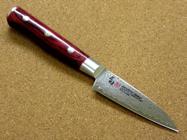 関の刃物 ペティナイフ 8.5cm (85mm) MCUSTA ZANMAI 三昧 クラシック プロ ダマスカス 33層鋼 芯金VG-10 ステンレススチール 赤合板ハンドル 最高級 職人用の洋包丁 果物包丁 野菜 果物の皮むき カクテル ケーキ用フルーツ 飾り切りナイフ 小型の両刃万能ナイフ 国産日本製