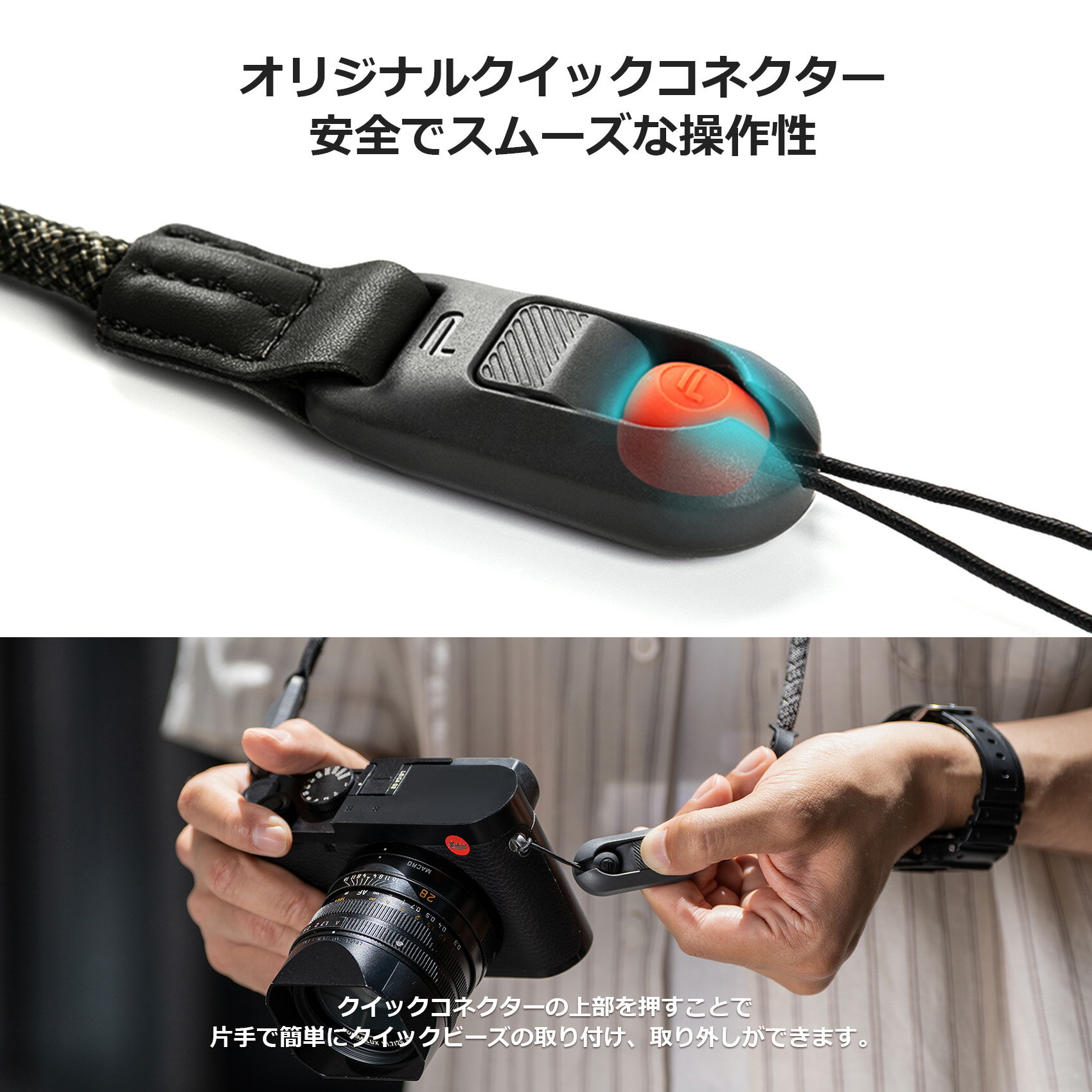 【バリエーション】 グラスグリーン ナイトブラック ヴァイブラント オレンジ モダンアート Sサイズ ボヘミアン Sサイズ 幾何学 Sサイズ モダンアート Lサイズ ボヘミアン Lサイズ 幾何学 Lサイズ ゆ〜とびさんのYoutubeにてご紹介いただきました!! 【商品説明】 PGYTECH カメラショルダーストラップ エアは、片手で着脱がスムーズに行えるオリジナルのクイックコネクターを採用しています。 リストストラップやバックパックストラップと互換性があり、多目的にご使用いただけます。 ショルダー部分には、染色堅牢度と耐光性に優れた環境に優しいMenorca®マイクロファイバーが使用されています。 幼児用製品のOEKO-TEX® STANDARD 100に適合し、600D強化ナイロンで最大90kgの耐荷重に対応します。 TPEライニングのショルダーパッドが快適性を確保し、両サイドの48本編みロープで長さを素早く調節できます。 4つのクイックビーズとTPU製の吊り下げリングが付属し、休憩時に体の前で交差させることで簡単に持ち運ぶことができます。 直径1.5mmのクイックリリース・ストラップはほとんどのカメラにフィットし、さらに2つのストラップアダプターが付属しているので、高い互換性を発揮します。 多彩なカラーバリエーションからお選びいただけます。 【製品紹介】 【スペック】 主な素材 ポリエステル、TPE、繊維強化ナイロン 重量 75.5g 耐荷重 90kg 長さ調節 1000~1400mm 各メーカーのコンパクトカメラやミラーレスカメラに対応。 【セット内容】 ●PGYTECH カメラショルダーストラップ エア × 1 ●クイックビーズ 2.0 × 4 ●ストラップアダプター × 2 ●ユーザーマニュアル × 1 ●Menorca® 素材タグ × 1 【カメラショルダーストラップ エア Q&A】 ショルダーストラップの長さ調整可能範囲は? ベーシック: 1000-1400mm アーティスティック S: 950-1100mm , L:1100-1400mm ヴィンテージ S: 1000-1200mm , L:1200-1400mm ショルダーストラップの耐荷重は? 最大90Kgの耐荷重です。 クイックコネクターからカメラが脱落する心配はないですか? クイックコネクターは、デッドポイント機構を採用しており、カメラが脱落する心配はありません。クイックビーズがロックされた状態であれば、どのような角度から力が加わっても、最大荷重である90Kgに耐えるように設計されています。 クイックビーズ部分のケーブルに黄色い色が見えるのはどんな時ですか? 3層構造となっており、2層目の警告層が見えている状態です。ケーブルの劣化・破損が進んでいますので、クイックビーズの交換時期として考えてください。 クイックビーズは付属の金属製クリップを使用せずにカメラのラグに直接取り付けることはできますか? クイックビーズのロープの直径は現在1.5mmで、ほとんどのカメラに直接取り付けることができます。 例:富士フイルム 汚れに強いですか?どうやって掃除すればいいですか? ストラップの主要部分はマイクロファイバーで作られています。汚れた場所はファブリッククリーナーなどで拭き取り、涼しい場所に置いて空気乾燥させてください。また、本製品は多層プレス技術によって製造されているため、クリーニングに出したり洗濯機で洗ったりせず、加えて乾燥させるために天日干しもしないでください。 手袋をしたままカメラストラップを取り外すことはできますか? はい、可能です。ただし、厚い手袋などでは作業が難しい場合があります。 夏場に使用すると熱くなりすぎたり、蒸れたりしませんか? カメラショルダーストラップは、快適で通気性に優れた完全水性マイクロファイバー生地で作られており、クッションバンプ設計により、従来のストラップと比較して通気性を効果的に向上しています。 どのタイプのカメラに適していますか? コンパクトカメラやミラーレスカメラへの使用をオススメします。 クイックビーズでカメラに傷がつくことはありますか? いいえ、ありません。本製品のクイックビーズは丸いボール状の成型となっており、カメラと触れてもほんとどキズや衝撃は発生致しません。 バッグのショルダーストラップとして使用できますか? クイックビーズのワイヤー紐の取り付け部があるバッグであれば問題なくご利用可能です。 保証期間は? 1年間です。 編みロープ部の吊り下げループはどうやって使うのですか? カメラをストラップから外したときに、ストラップの両端を一時的につなぐことができ、持ち運びに便利です。