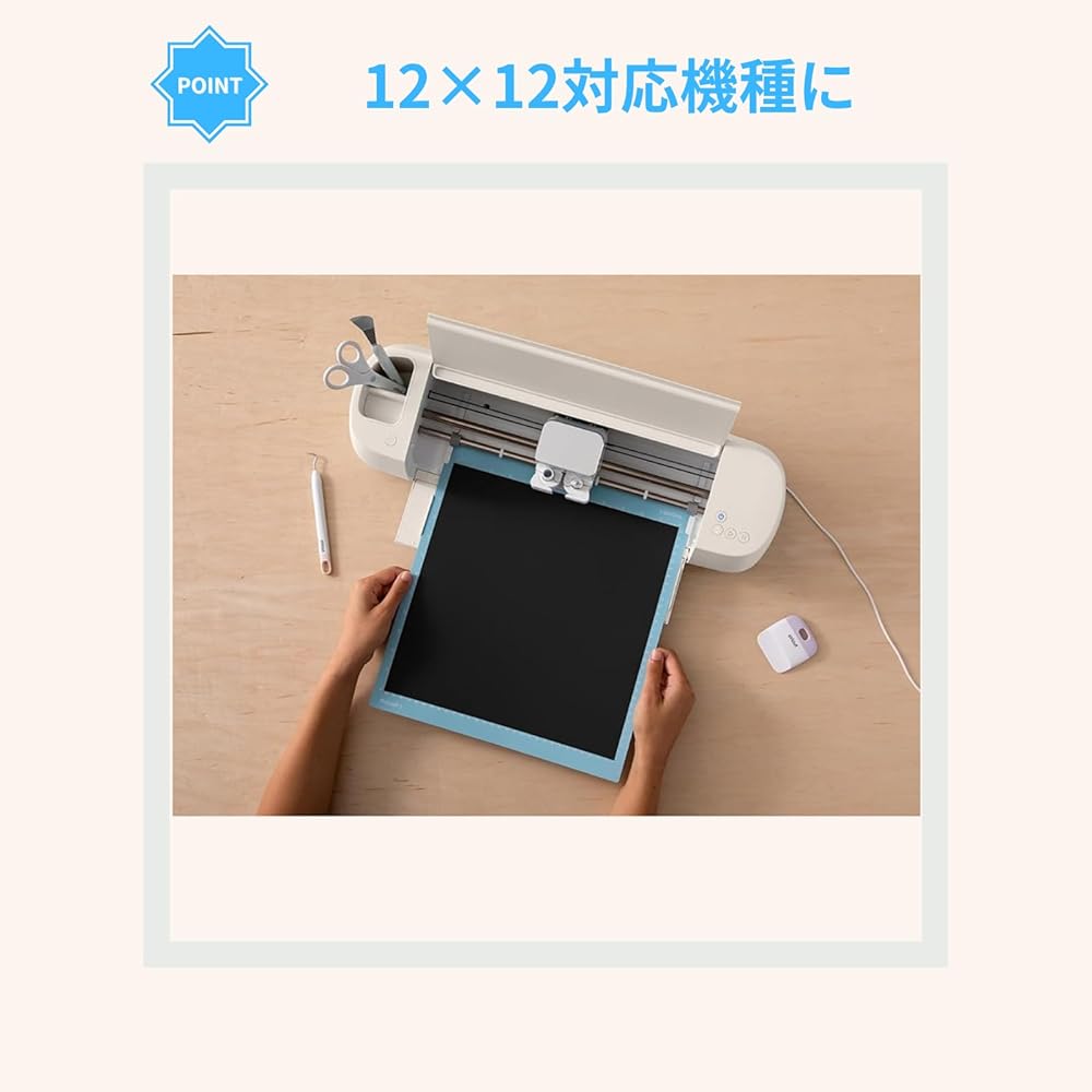 商品情報 商品の説明 12×12インチのカッターマット4枚セットです。Light/Standard/Strong/Fabricの各グリップを同梱し、紙・カードストック・ビニール・フェルトや布地まで、素材ごとに最適な保持力で作業できます。方眼の目盛グリッドがレイアウトや位置合わせをサポート。作業後は付属の保護フィルムを貼り戻すことで、粘着面のホコリ付着を抑えて繰り返し使えます。 ※粘着力は環境や素材で差があります。新しいマットは粘着が強めのため、最初は端材でテストしてください。布用は当て布の上から軽く圧着すると定着しやすく、剥がす際は低速で行ってください。 ※12×12インチ対応のカッティングマシンでご使用ください(機種によりマージンや搬送条件が異なります) 主な仕様 【Cricut Explore 3 / Maker 3 向け】 Cricut (クリカット) Explore 3 / Maker 3マシンで使用可能な互換カッティング台紙(粘着マット)です。 【4種の粘着力で全素材に対応】 Light (弱粘着) / Standard (中粘着) / Strong (強粘着) / Fabric (布用) の4種類の粘着強度が1セットに。素材に合わせて使い分けることで、最適なカッティングを実現します。 【素材に合わせた最適なグリップ】 薄い紙やビニールにはLight、カードストックにはStandard、厚紙やPVCにはStrong、布地やフェルトにはFabric。素材のズレや破損を防ぎます。 【作業しやすい12×12インチ】 約30.5cm x 30.5cm(12x12インチ)の定番作業領域。1インチ刻みの方眼目盛グリッド付きで、材料の位置決めが簡単かつ正確に行えます。 【粘着力が長持ち】 丈夫なPVC素材を採用し、繰り返し使用が可能。各マットには透明の保護フィルムが付属しており、使用後はフィルムを貼り戻すことで粘着面をホコリから守ります。