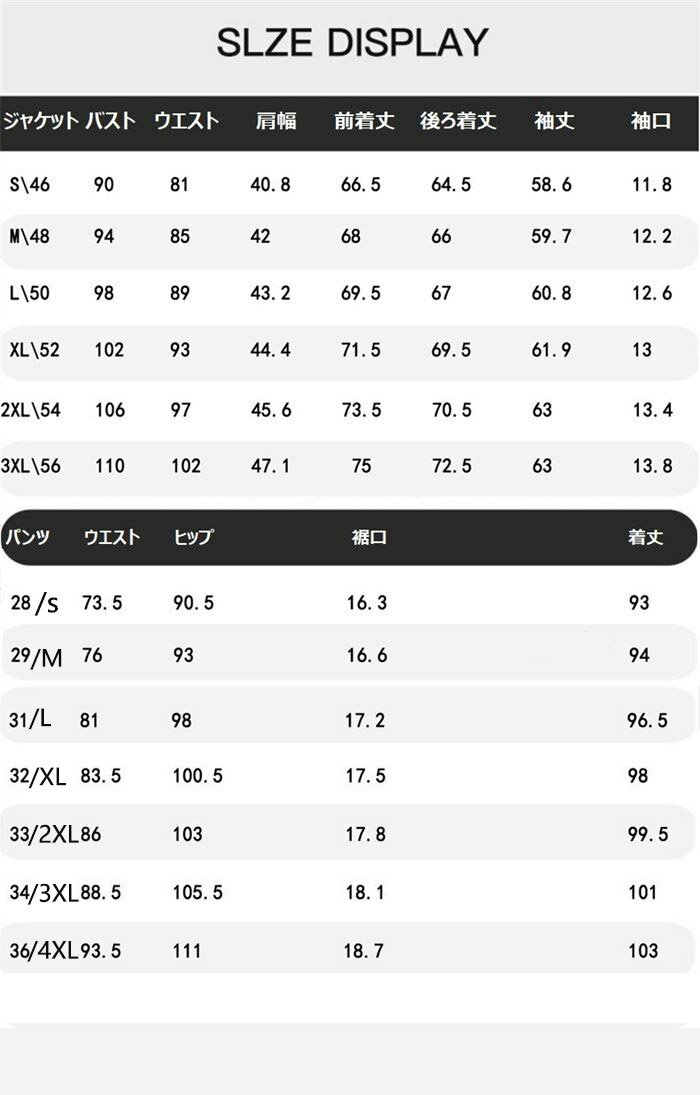 商品情報 商品名 スーツ メンズ スリーピース タキシード 紳士服 礼服 メンズスーツ フォーマル ビジネス 通勤 オフィス 就活 面接 カジュアル 上品 お呼ばれ パーティー 結婚式 二次会 スリムスーツ 30代40代50代 大人 大きいサイズ パンツスーツ 3点セット おしゃれ 無地 黒 グレー素材 0カラー A|B|C|Dサイズ 各サイズの寸法については画像のサイズ表にご参照ください。生産国 中国包装について 環境保護の観点から、「簡易包装」を推進しております 明細書について 当店ではエコロジーと個人情報流出防止のため、ご指示の無い限り明細書を発行しておりません。 明細書を発行ご希望の場合は個別に承らせていただきます。お手数おかけいたしますが、ご注文時に備考欄に明細書発行希望の旨、ご入力ください。配送について 当店は複数の保管倉庫を契約しており、複数商品をご注文の場合、商品保管倉庫により、それぞれ出荷する場合があります。 時間指定は下記よりお選びいただけます。 午前中、14-16時、16-18時、18-20時、19-21時在庫に関するお知らせ 当社では複数店舗を運営し他店舗でも販売しております為、万一、商品の品切れ等によりお届けできない場合、 またはお届けが遅れる場合がございます。その際には当方よりメールにてご連絡を差し上げま すが、あらかじめご了承下さいますようお願い致します。注意 ※日本サイズ表示ではなく、ご購入前にぜひともサイズ表をご確認ください。※機械による生産過程により、生地を織る際の糸の継ぎ目や多少のほつれなどが生じている場合がございます。※サイズは平置き、メジャー採寸を行っております。 実寸は商品によって若干の誤差が生じる場合がございます。予めご了承ください。※お客様のご覧になられますパソコン機器及びモニタなどの違い、また室内、室外での撮影により実際の商品素材の色と相違する場合もありますのでご了承下さい。※※ベルト、飾りやインナーなどは含みません。 メーカー希望小売価格はメーカーカタログに基づいて掲載しています 不良品についての説明基づいて掲載しています