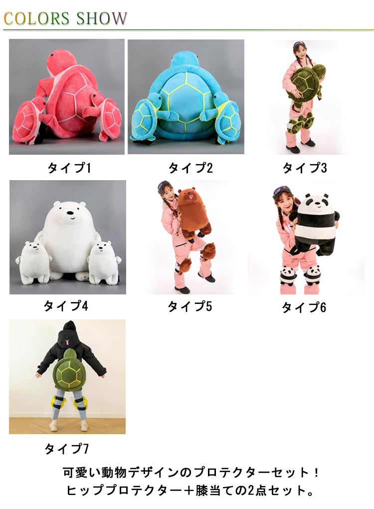 【クーポン最大1000円OFF!】スノーボード プロテクター 大人用 子供用 膝当て ヒップ保護 お尻保護 衝撃吸収 転び防止 痛み軽減 柔らかい ヒッププロテクター お尻サポーター 膝保護 耐衝撃 可愛い パンダ 亀 熊 スケートボード