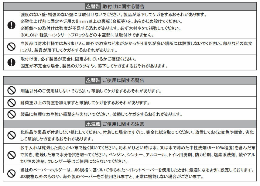 ※一部の直送品に関しまして、北海道・沖縄県・離島への発送をお受けできない場合がございます。誠に恐れ入りますが、当店にてご注文をキャンセルさせていただく場合がございますので、予めご了承下さい。 ●材質:亜鉛ダイキャスト+ステンレス ●付属品:+なべタッピンねじ(1種) 4本、M4バネ座金4個 ●仕上:クローム+鏡面 ●耐荷重:49N(5kgf) ※トイレットペーパーはJIS規格のものをご使用下さい。