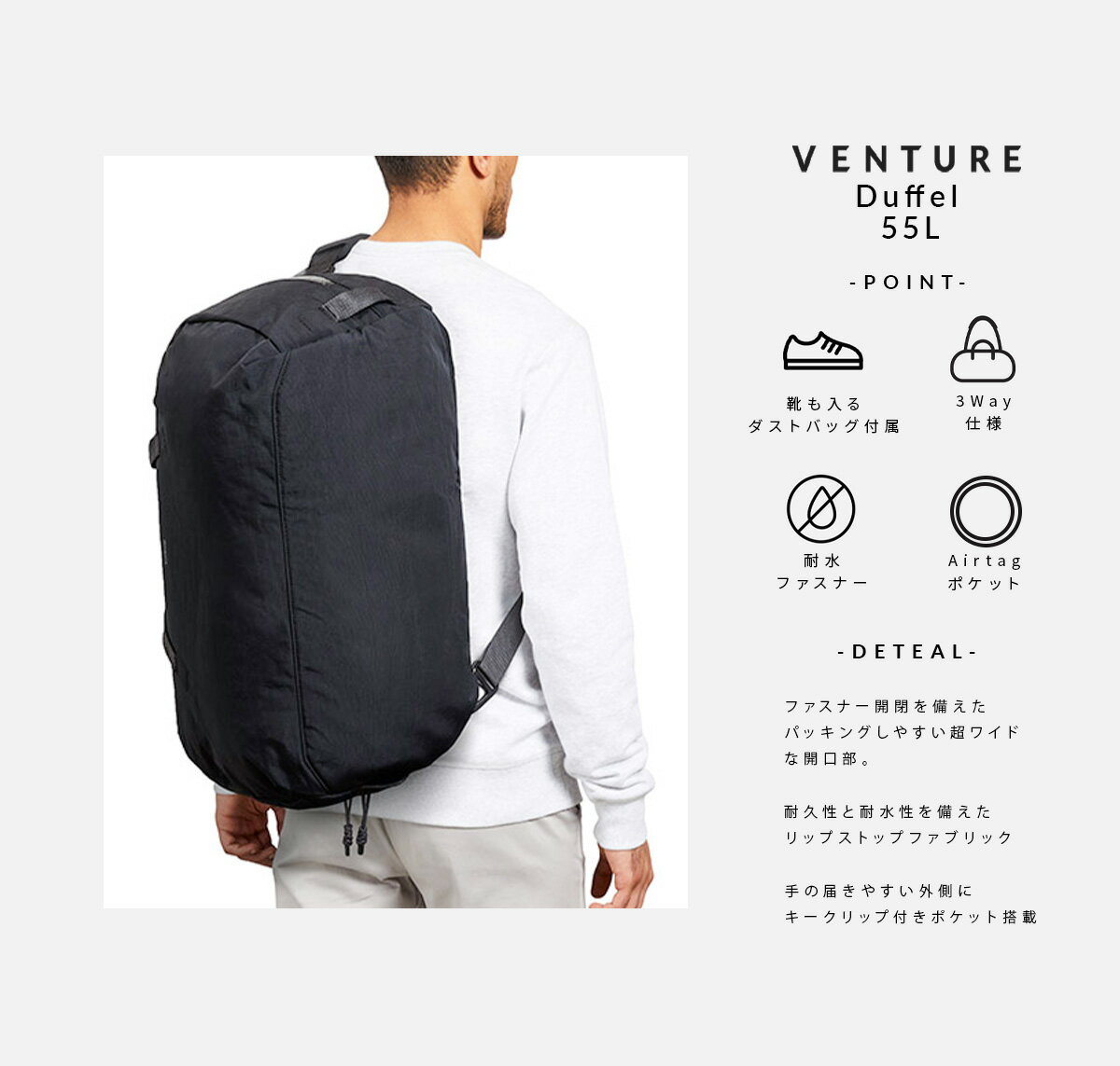 Bellroy -ベルロイ-よりシンプルに、そして簡単に持ち運ぶ方法を提案するため、ベルロイはデザインに多くの時間を費やし心を込めて製作しています。ストレスフリーのライフスタイルを目指し、あらゆるアイデアを細かく考慮して作られています。オーストラリアを拠点に社会貢献に取り組みながら、長く使える製品を生み出し、地球に良い影響をもたらす B Corp認証企業です。ブランドページ>> ■Bellroy ベルロイ / Venture シリーズ / Venture Duffel 55L ダッフルバッグ ボストンバッグ ショルダー【BVLA】 THE Venture COLLECTION 冒険心を持って日常を楽しみたい ― そんな願いを叶える Ventureコレクション。手つかずの自然あふれる道を散策したり、土砂降りの雨の日に近場にお出かけしたり、果敢な行動力を失うことなく一週間全力で楽しめます。 ●すっきりとしたミニマルな筒型デザイン ●ファスナー開閉を備えたパッキングしやすい超ワイドな開口部 ●手の届きやすい外側にキークリップ付きポケット ●内側上部にファスナー付きメッシュポケット ●取り外し可能な耐水ダストバッグ ●強度のあるロールエッジのハンドル ●取り外し可能なパッド入りショルダーストラップ(2箇所で装着可能) ●両端に強力なフィンガーループ ●耐水性のあるファスナー開閉 ●ロック可能なメインファスナーに掴みやすい紐状のファスナープル ●耐久性と耐水性を備えたリップストップファブリック ●レザー不使用 ●6年間保証 ●素材: バイダナイロン ●内側にApple AirTag用スリップポケット スペック ブランド |Bellroy / ベルロイ シリーズ |Venture / ベンチャー 品番 |BVLA 品名 |Venture Duffel 55L |ベンチャーダッフル 形状 |ダッフルバッグ |ボストンバッグ |ショルダーボストン 外寸 |W370×H600×D320[mm] 重量 |約 900g 収納サイズ |B4用紙 容量 |約 55L 素材 |リサイクル織布(バイダナイロン) 生産国 |Philippines / フィリピン 付属 |ショルダーストラップ 保証 |6年間保証 仕様 |超ワイドな開口部 |取り外し可能なポーチ |3way仕様 ATTENTION ●6年保証について ベルロイの製品は、ご購入日から6年間の保証が付いています。正常に使用していたにもかかわらず破損した場合に適用されますので、スリムな財布を心がけ、あまりたくさん収納しすぎないようにしましょう。財布を傷つけるような尖ったものなどは入れないようにしてください。カードなどを収納しすぎてしまうと、レザーが伸びて変形したり、ステッチ部分などに過度のストレスがかかって破損したりする可能性があります。 この保証は製品に使用される素材や製法の不備により生じた不具合が対象です。誤使用又は必要なお手入れを怠ったことによる破損、通常使用による損耗及びお客様のご都合による交換に対しては保証適用外となります。 ●サイズはメーカー公称値(許容される最小値と最大値の中心値)です。 ●天然の皮革製品には、革本来のキズやシワ、色ムラが生じている場合がございます。天然素材ならではの風合いとしてお楽しみください。 ▼ 関連商品を探す ▼ 「ベルロイ」一覧はこちら > 「ボストンバッグ」一覧はこちら > ▼ 比較商品はこちら ▼