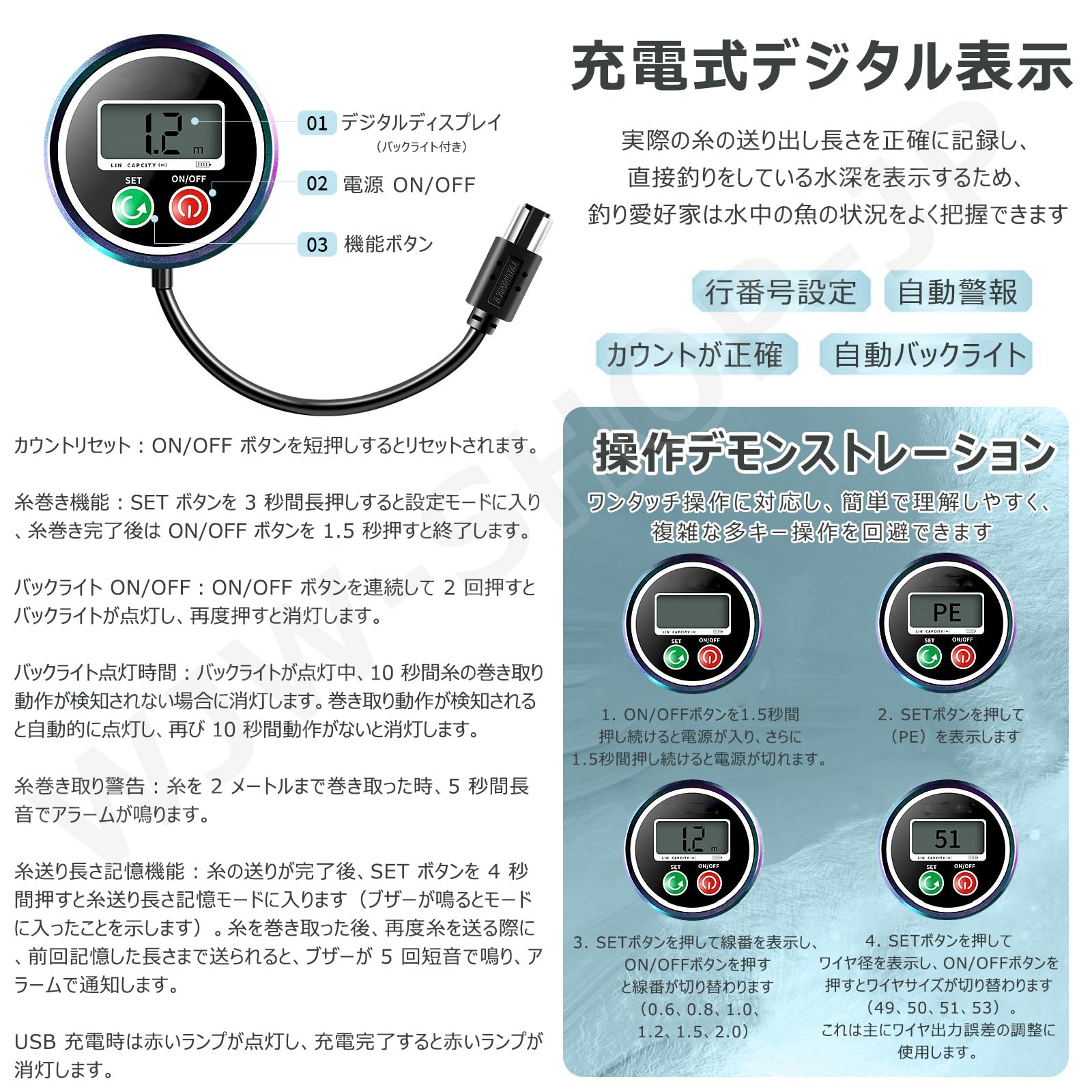 · 【高機能デジタル表示】充電式デジタルパネル搭載で、糸送り長さ記録水深表示、自動警報(行番号設定カウント正確自動バックライト等)機能付き。操作性シンプルで、夜釣りも視認性良好。· 【二重ラインフィードモード】右押しでポイント送り、左押しで連続自動送りの 2 モード。人気のフライフィッシングに最適で、糸送り巻取りがスムーズ。· 【高強力磁気軽量耐久性】20 個の高エネルギー永久磁石搭載で、水層探査詳細。アルミ合金 CNC 精密彫刻ボディは軽量(212g~355g)かつ堅牢、淡水海水両対応で摩耗軽減。· 【自動均一ケーブル配線】左右に動く自動配線装置で、スムーズなケーブル配線実現。O 型セラミック糸出口は放熱速く、耐磨耗で糸損傷防止。· 【ワンタッチ下降調整】時計回り / 反時計回り回転で、ワンタッチ下降制御減速調整可能。大型魚対応のテンション調整ダイク搭載で、魚の引き力緩和。高機能フライフィッシングリール、釣り体験を進化させる!当リールは、高強力磁気式デジタル表示と二重ラインフィードモードを搭載し、淡水海水両用に対応する、次世代フライフィッシングリールです。釣り愛好家のニーズに応える多彩な機能と、軽量かつ耐久性のある設計で、あらゆる釣りシーンを強力サポートします。【核心機能 1:デジタル表示でスマート釣り体験】充電式デジタルパネルが、糸送り長さを正確記録し、水深を表示。自動警報(行番号設定カウント正確自動バックライト)機能で、夜釣り時の視認性も向上。操作はワンタッチで簡単!【核心機能 2:二重ラインフィードモード】「右押し:ポイント送り(手離すと自動復帰)」「左押し:連続自動送り(ハンドル回すと解除)」の 2 モード。フライフィッシングに最適な、スムーズな糸送り巻取りを実現。【核心機能 3:高強力磁気 × 軽量耐久性】20 個の高エネルギー永久磁石で、水層全体を詳細探査。アルミ合金 CNC 精密彫刻ボディは軽量(212g~355g)かつ堅牢。淡水海水両対応で、密閉防塵構造により摩耗を軽減、長期耐久性を実現。【核心機能 4:自動均一ケーブル配線】左右に動く自動配線装置が、スムーズなケーブル配線をサポート。O 型セラミック糸出口は、放熱速く耐磨耗で、糸送り巻取り時の糸損傷を防止。【核心機能 5:ワンタッチ下降調整】ダイヤルを時計回り / 反時計回りに回すだけで、ワンタッチ下降制御減速調整可能。大型魚対応のテンション調整ダイクで、魚の引き力を緩和し、安心して魚との闘いに臨めます。▶適用シーンターゲットフライフィッシング愛好家向けに設計。淡水(川湖)や海水(磯船釣り)での使用に最適。特に、精密な糸送り水深管理が求められるシーン(例:目印フライフィッシング)で活躍します。▶製品仕様(抜粋)基本スタイル:変速比 3.6:1 / 軸受 8+1 / 重量 212g自動配線タイプ:変速比 4.0:1 / 重量 253g自動配線 + デジタル表示:変速比 4.0:1 / 重量 355g対応:淡水海水両用 / 自動ケーブル配線 / デジタル表示搭載▶釣りの楽しさをさらに引き出す、高機能フライフィッシングリールです。初心者から上級者まで、あらゆる層におすすめの 1 本を、ぜひお試しください!品質サービス:1、 当社の製品に問題がある場合は、お気軽にお問い合わせください。2、輸送中に多少の衝撃が加わる可能性がございます。万が一不具合や破損などがございましたら、部品の再送など対応させていただきますので、お気軽にご連絡くださいませ。3、商品が多いため、発送時に説明書をお送りし忘れることがございます。万が一、説明書が届いていない場合や、商品組み立てに関してご不明点がございましたら、お手数ですがご連絡いただけますようお願い申し上げます。電子版の説明書を再送させていただきますので、どうぞご安心ください。お客様にはご理解いただきますようお願い申し上げます。お客様のご支援が、私たちの励みとなっております。