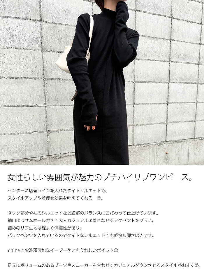 \美シルエットワンピースが今年も登場!/【Sサイズ/フリーサイズ/Lサイズ】フィンガースリーブプチハイリブワンピース / レディース 秋冬 冬 ロング セレクトモカ select moca セレクトモカバイソン SONさん コラボ by SON select moca