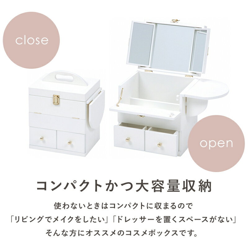 【20日★4H限定★5%OFFクーポン】 コスパで選ぶなら 三面鏡付き メイクボックス 鏡付き コスメボックス 木製 バニティ ピンク ホワイト ブラウン 三面鏡 【完成品】 鏡付き コスメケース 軽量 持ち運び 収納 大人気 おしゃれ 鏡付き化粧ボックス 卓上ドレッ