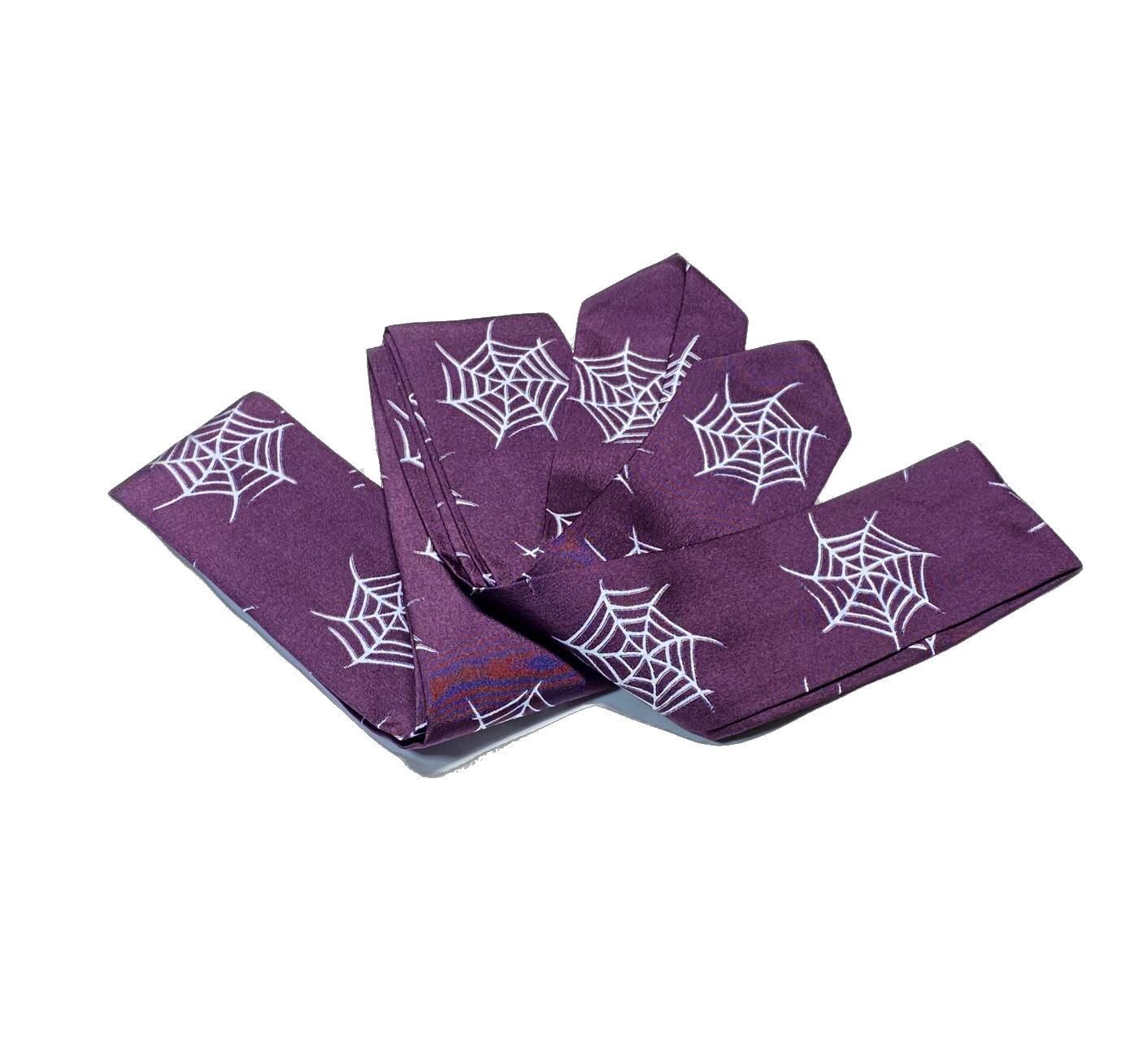 キモノ仙臺屋オリジナルお誂え『かわいい柄の腰紐』ロイヤルパープル色 くものす柄 正絹素材 No.1403 ゆったり並尺 たすきにもオススメ長さ約225cm 生地しっかり締まりやすいシルク素材の腰紐 こしひも 着物が着たくなる楽しい 日本製品 「自由布」 ポスト投函で配送