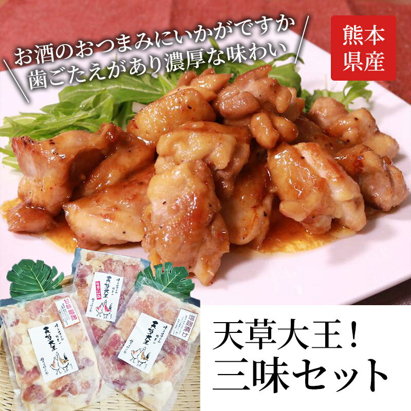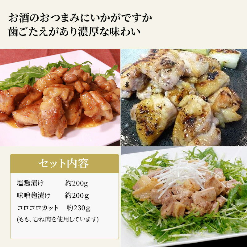 天草大王 熊本産 三味セット 塩麹漬け約200g 味噌麹漬け約200g コロコロカット約230g 送料無料 お取りよせ 贈り物 ギフト 天草 地鶏 ご家庭用 夏ギフト バーベキュー 焼き肉 お歳暮 お中元 敬老の日