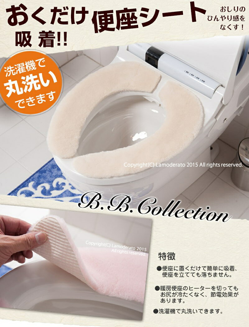 便座シート 貼る『プレミアムソフト』置くだけ 吸着シート [B.B.collection クッショニー すべらない 白 ふわふわ 節電 エコ ] ベージュ ホワイト ピンク