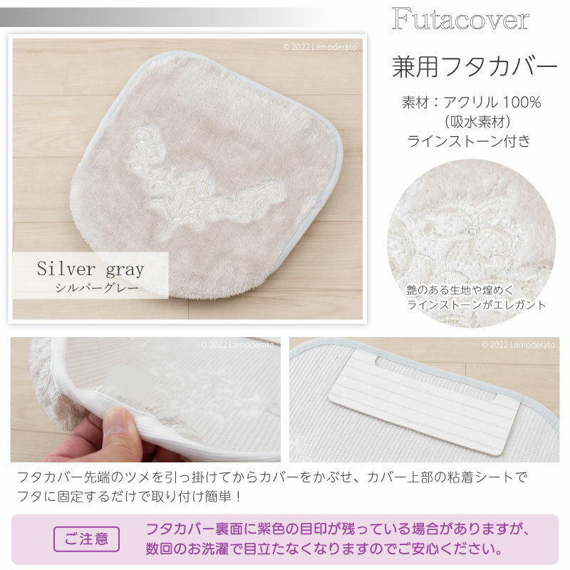 商品詳細 サイズ: 普通便座、温水洗浄・暖房便座兼用 ※フタのサイズや形状により適合しない場合がありますのでご購入前に適合機種についての図表を必ずご確認ください。 ⇒ 適合サイズ・機種の確認はこちら 素材:アクリル100%(吸水素材) ラインストーン付き カラー:シャンパンゴールド・プラチナ・シルバーグレー インドネシア製 ご注意 ・洗濯時に多少色落ちしたり、毛羽落ちすることがありますので、他の衣類といっしょに洗濯しないでください。 ・塩素系洗剤、漂白剤、柔軟剤は使用しないでください。 ・洗濯機の弱回転で丸洗いをしたあと脱水機にかけ、形を整えてから陰干ししてください。 ・乾燥機は使用しないでください。 ・便フタが濡れていたり、ほこりが付いていると吸着しませんので、便フタの表面をよく拭いてから使用してください。 最初は吸着力が強いので取り付けにくい場合がありますが、1〜2度洗濯すると吸着力が落ち着いて取り付けやすくなります。 吸着力が弱くなったり、吸着しなくなった場合は、吸着面をタオルで軽く水拭きして湿らせると吸着するようになります。 直接日光に当たると、劣化して吸着しなくなりますのでご注意ください。 お客様のモニタ環境等によりまして実際のカラーと多少異なる場合がございます。ご了承の上ご注文くださいますようお願いいたします。 関連商品 ブランド:ニーナス シリーズ:シャンティ アイテム:兼用フタカバー(吸着タイプ)シリーズアイテム