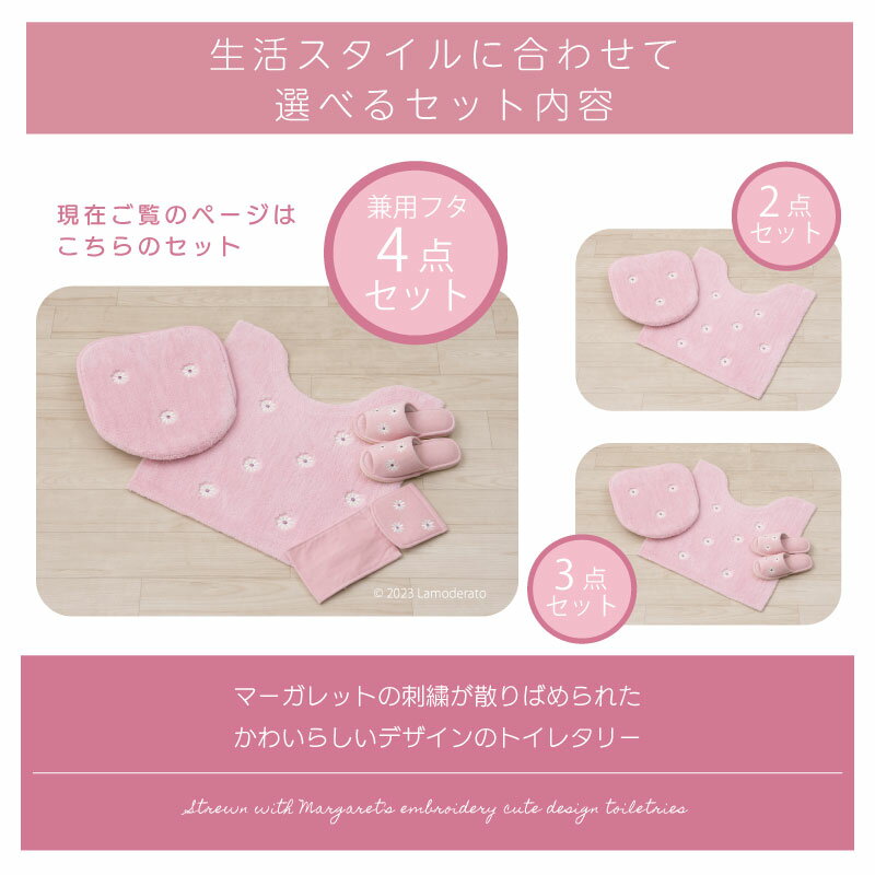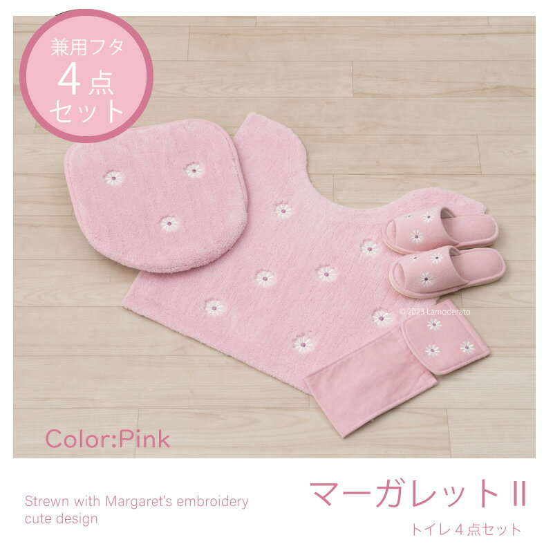 トイレ 4点セット『マーガレット II』ピンク(トイレマット 約58×60cm 兼用フタカバー スリッパ ペーパーホルダーカバーN)[ トイレ セット トイレカバー 可愛い 洗える 花柄 ]