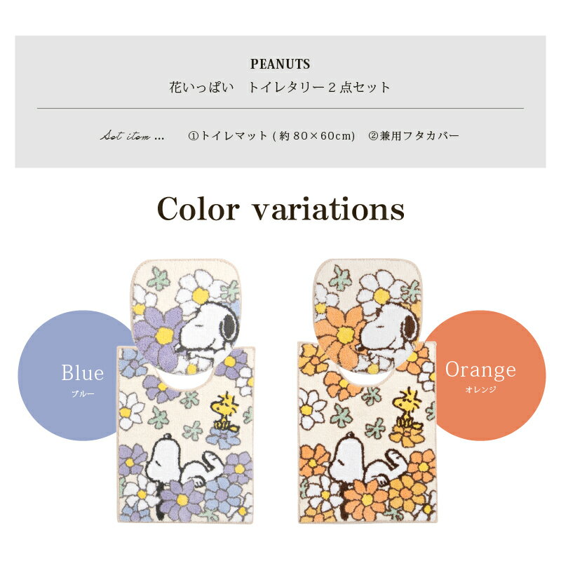 【SALE】スヌーピー トイレ 2点セット『花いっぱい』(ロング トイレマット 約80×60cm 兼用フタカバー) [ トイレタリー トイレカバー セット キャラクター グッズ おしゃれ 大人 かわいい PEANUTS snoopy SENKO センコー ] ブルー オレンジ23AW