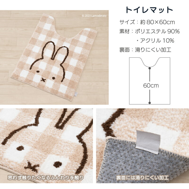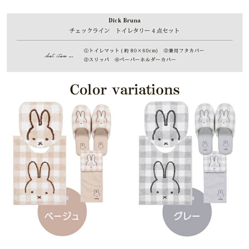 【SALE】ミッフィー トイレ 4点セット『チェックライン』(ロング トイレマット 胴長 約80×60cm 兼用フタカバー スリッパ ペーパーホルダーカバーN) [ DickBruna Miffy ミッフィー グッズ 大人 可愛い おしゃれ インテリア トイレカバー センコー ] ベージュ グレー 23AW