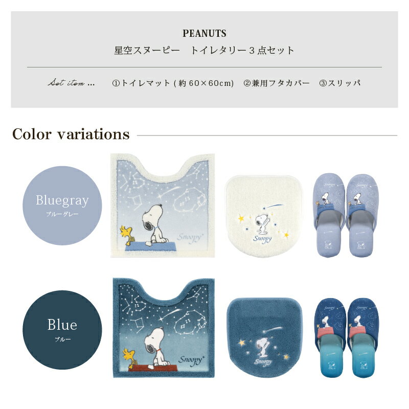 トイレ 3点セット『星空スヌーピー』(トイレマット 約60×60cm 兼用フタカバー スリッパ )[ PEANUTS snoopy キャラクター グッズ 大人 向け トイレタリー トイレカバー セット おしゃれ かわいい SENKO センコー] ブルー ブルーグレー 24SS